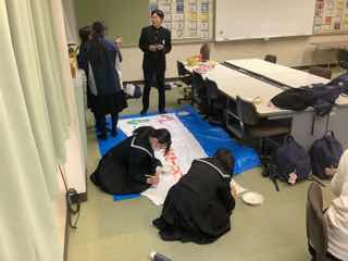 2年生が1月末から出かけるスキー学習に向けて準備を進めています。今日は実行委員さんがスローガンの横断幕を作成していました。2年生全員で思い出に残るスキー学習にしましょうね☆