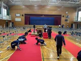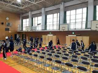卒業式に向けて、会場準備や掃除を1、2年生が行いました。心を込めてイスを並べたり、一生懸命掃除をしたりする姿を見ることができました。お世話になった卒業生のために、頑張る姿が素敵でした🎶