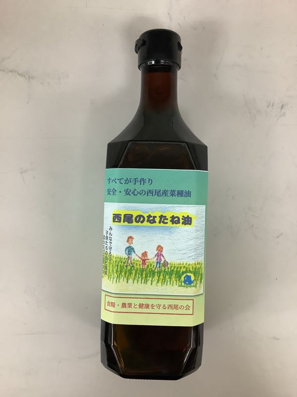 食糧・農業と健康を考える西尾の会の方より、菜種油を贈呈していただきました。昨年、今の3、4年生が植え付けた菜種からしぼった油です。