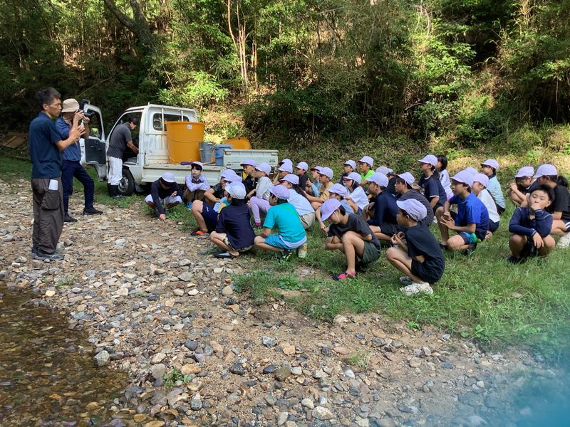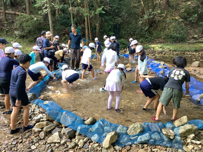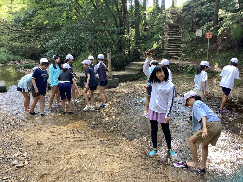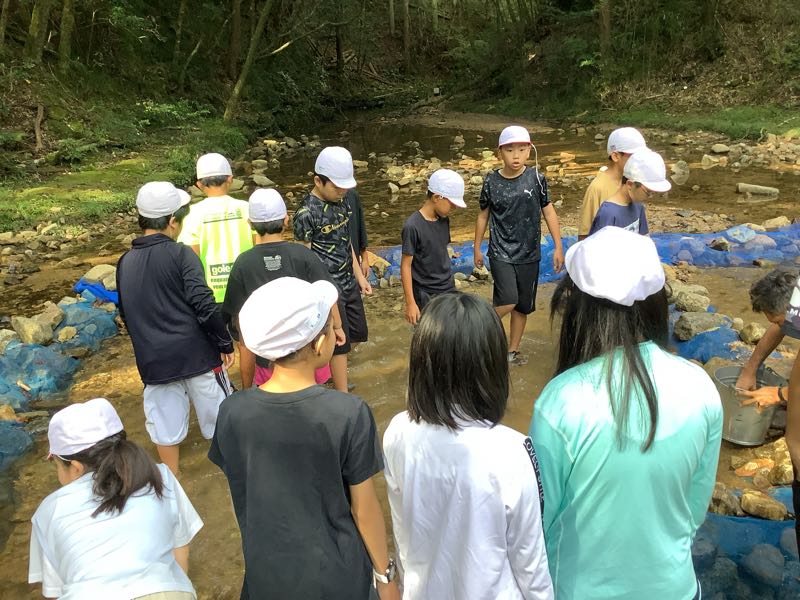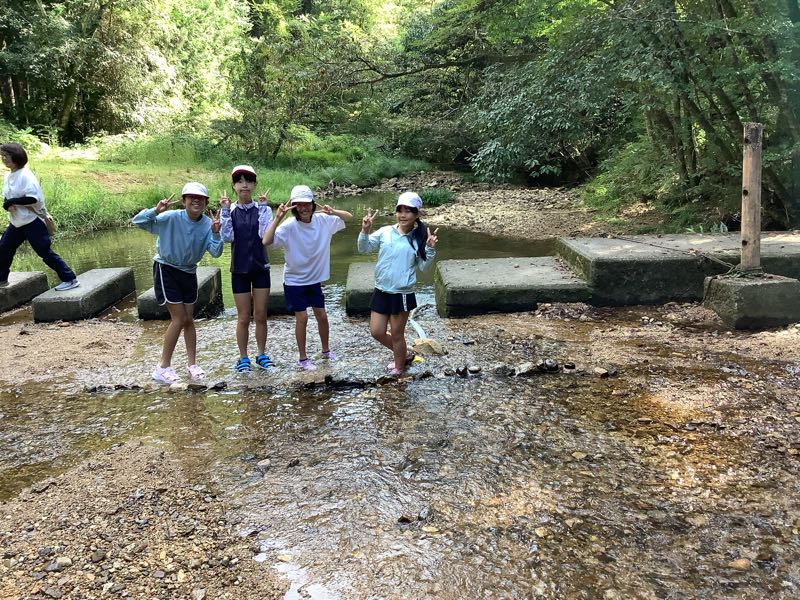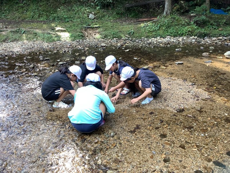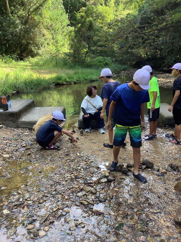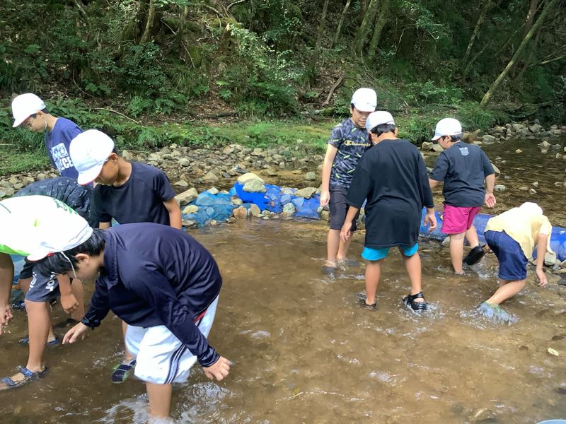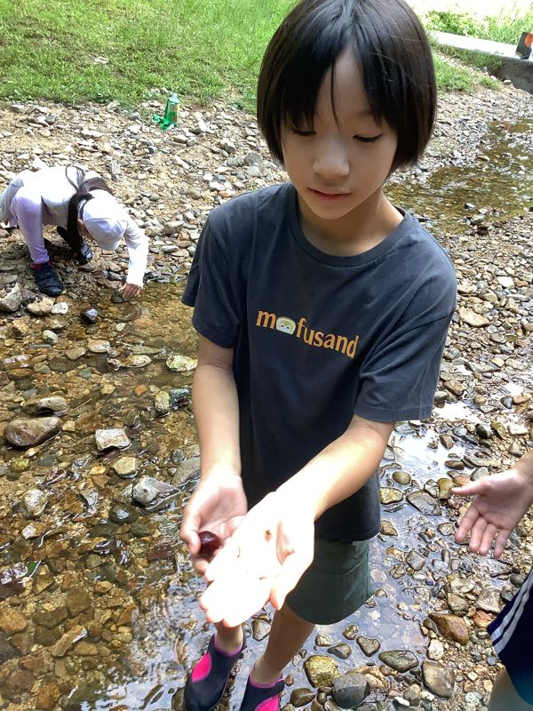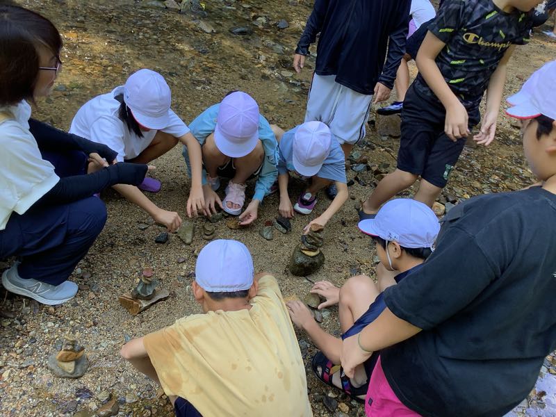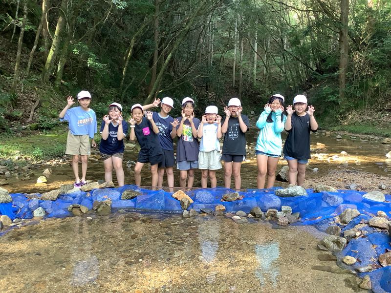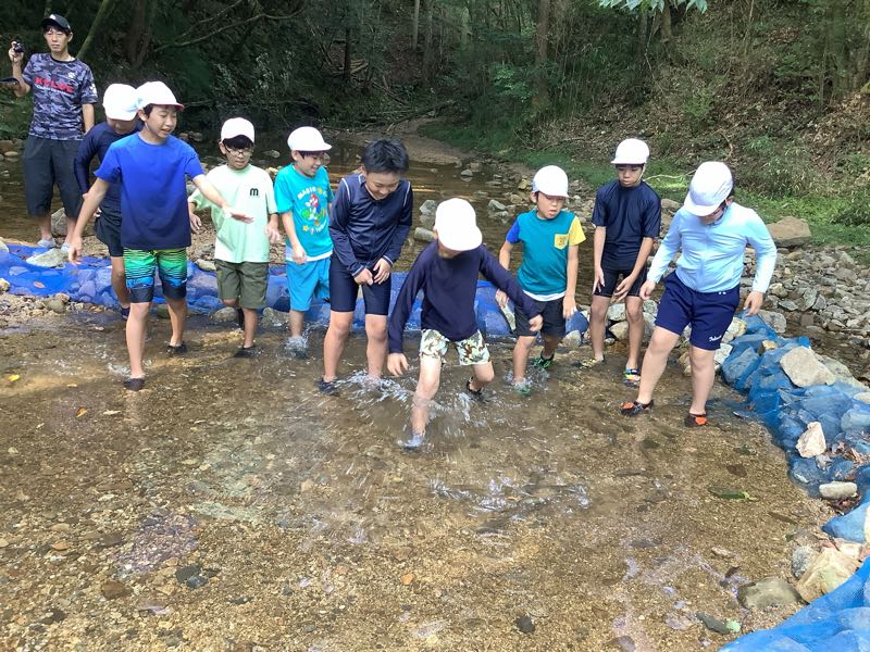 マスつかみにチャレンジしました!「こっちにいるよ!」「ぬるぬるしてる!逃げられた〜」となかなか苦戦している様子でした。川遊びでは、ダムを作ったり、生き物を見つけたり、自然との触れ合いを楽しみました。