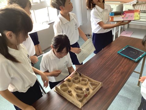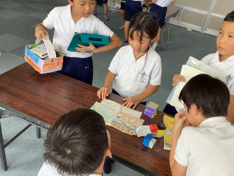 次回、訪問させていただくときのリハーサルを行いました。利用する側の立場に立って、道具を作った友達にアドバイスをしました。