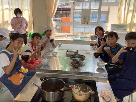 昨日、家庭科でご飯とみそ汁を作りました。班ごとに協力し、分担した仕事を確認しながら調理を進めました。