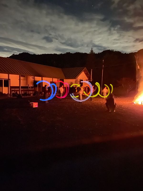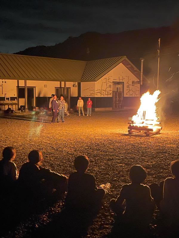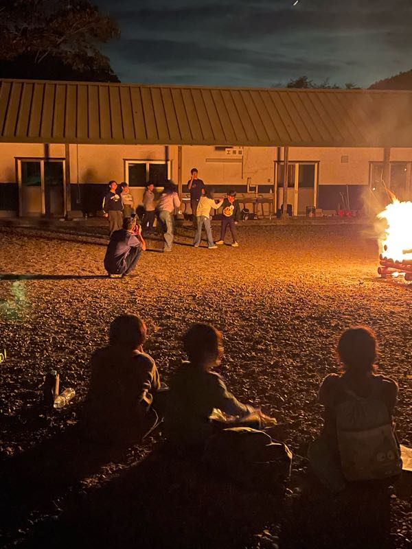 キャンプファイヤーが無事に終わりました。どのグループのスタンツもおもしろくて、笑いが絶えませんでしたね。トワリングの発表もとても美しかったです。手の皮がむけてしまうほど頑張った練習の成果を100%発揮できていました。もうすぐお風呂の時間です。