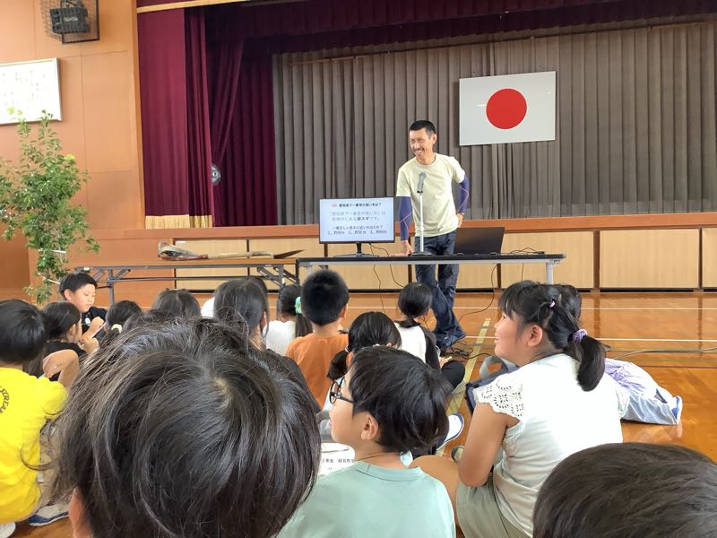 西尾市の植木職人さんを講師に招き、緑育教室を開きました。三年生の子たちは職人さんの愛用の道具を見せていただいたり、樹木にまつわるクイズに答えたりしました。