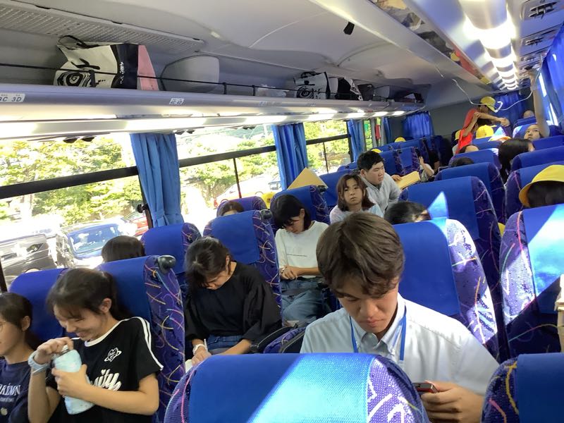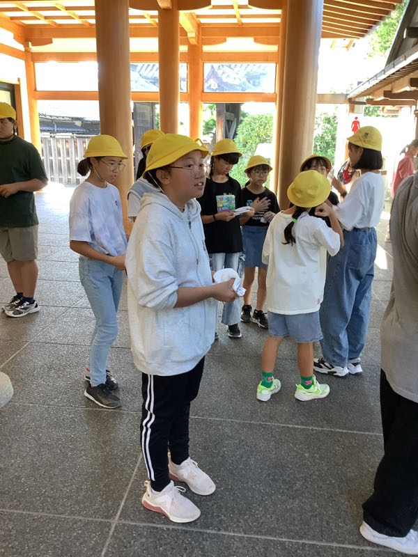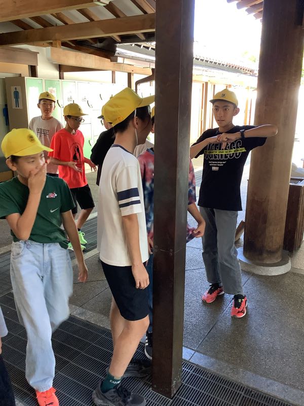 最後の見学地である三十三間堂の見学を終えました。6年生の皆さんは少し疲れた様子ですが、全員そろって帰りのバスに乗り込みました。バスは先程、福北小に向けて出発しました。