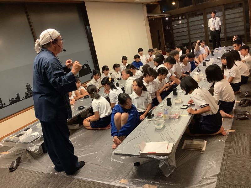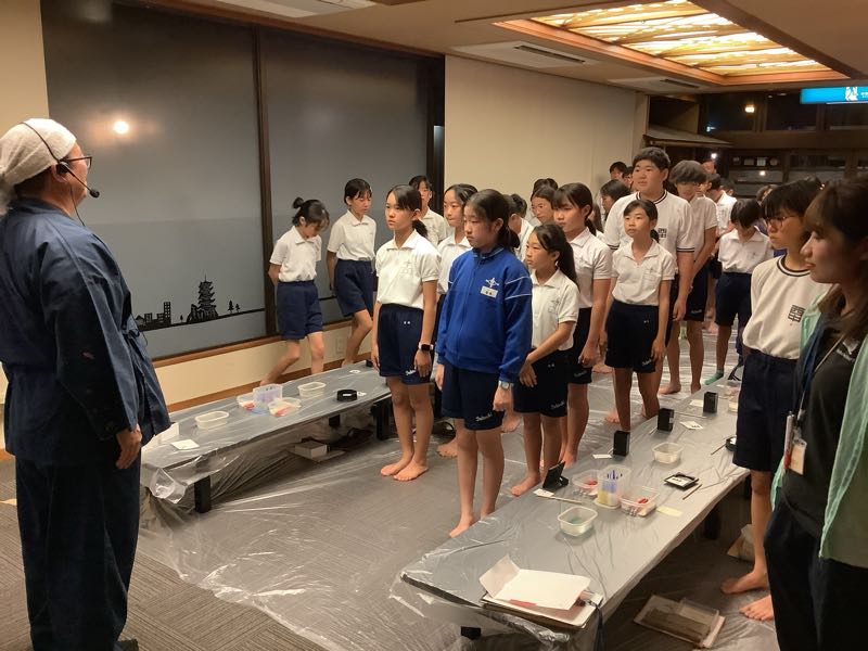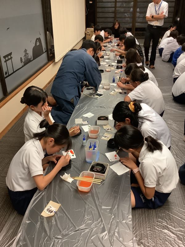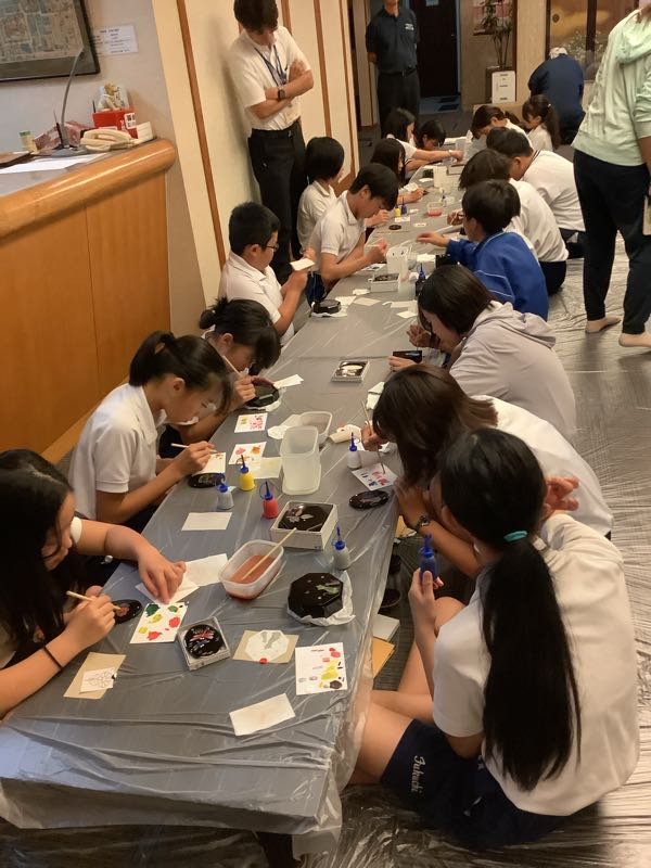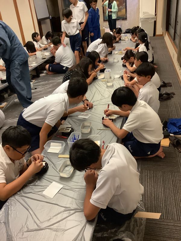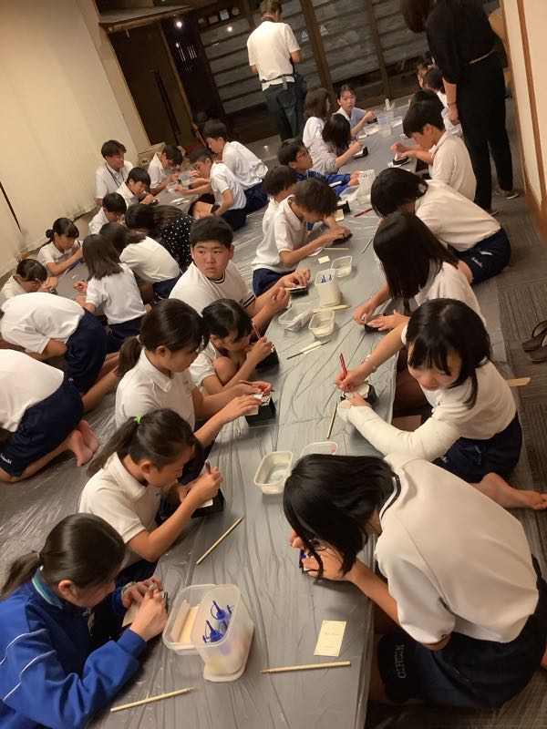 お風呂の時間が終わり、漆器加飾体験が始まりました。