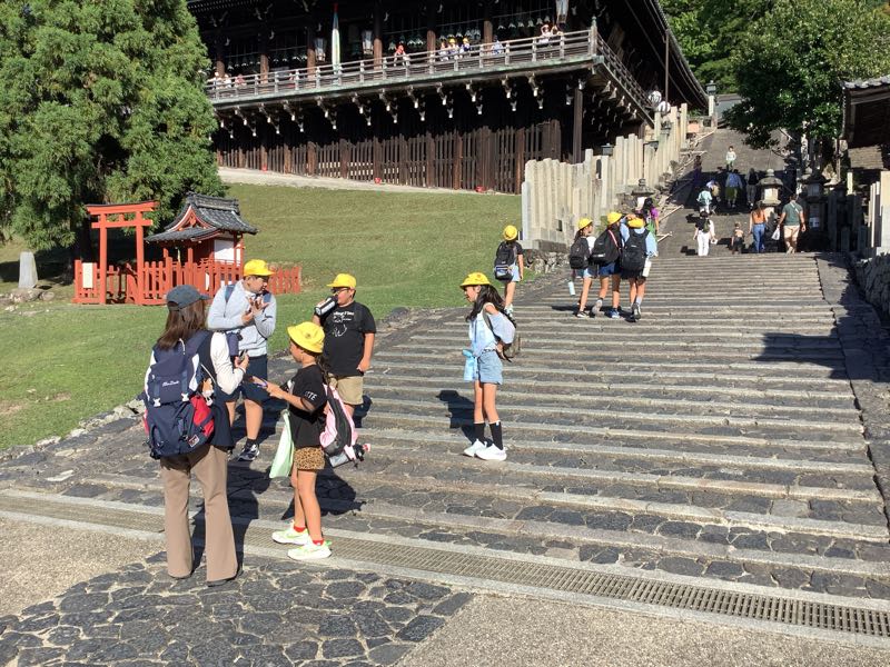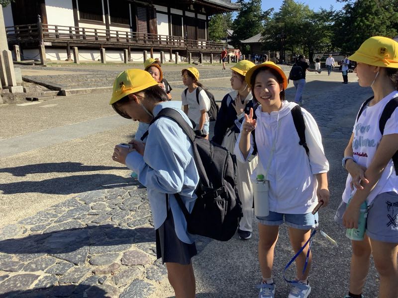 東大寺での班行動が終わりました。シカの多さに驚いている人もいましたね。班のメンバーで協力し、目当ての場所に行くことはできましたか?全員ケガなくバスに乗り、旅館を目指しています。