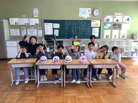 かわいいランタンができました。優しい光が素敵です。みんなで記念の「はい、チーズ!」