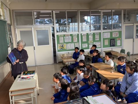 みんなお話の世界に引き込まれました。図書ボランティアさん、いつもありがとうございます。