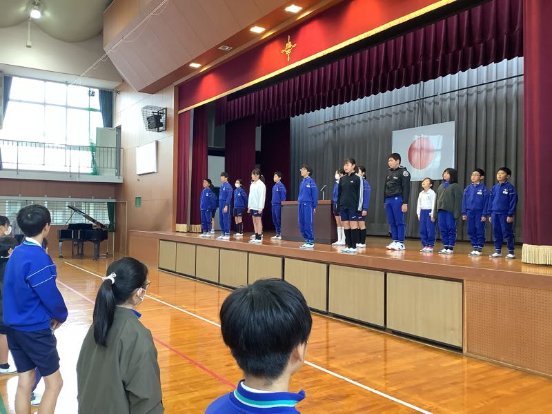 朝の時間に全校朝会を行いました。月目標である「言われてうれしい言葉をたくさん使おう」を心にとめながら、12月を過ごしましょう。