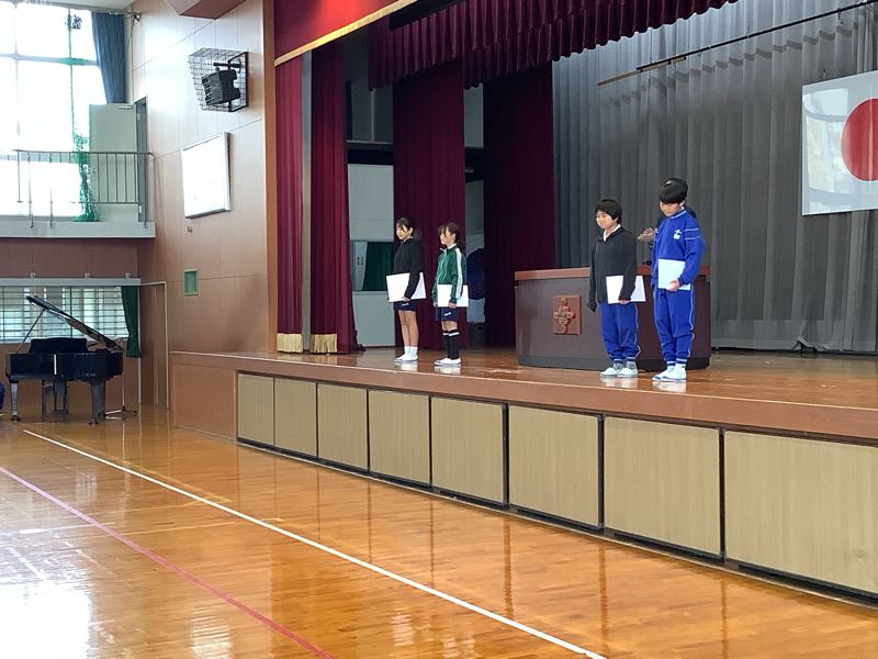 表彰を受けた児童の皆さん、おめでとうございます。長かった2学期も、残り3週間ほどです。学習のまとめをしっかり行いましょう。