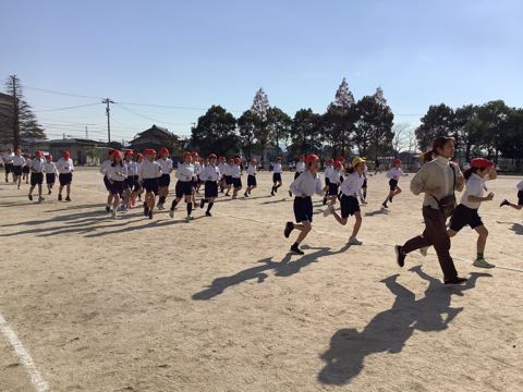 風もなく、気持ちのよい天気の下、今日も福北っ子は元気に業間マラソンに参加しました。