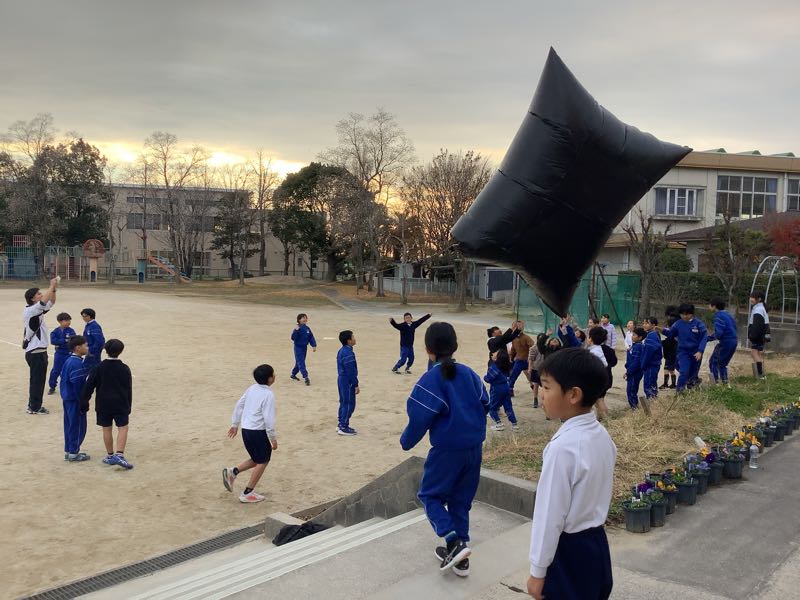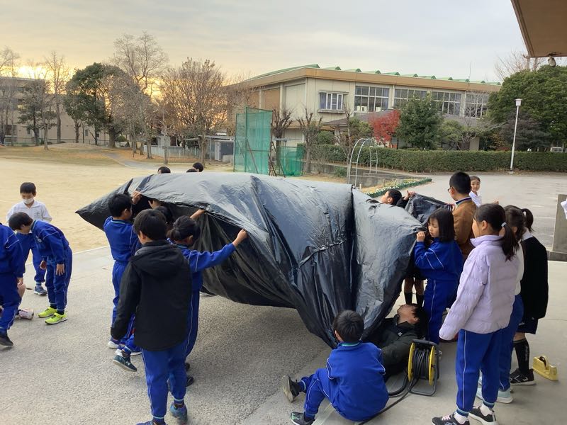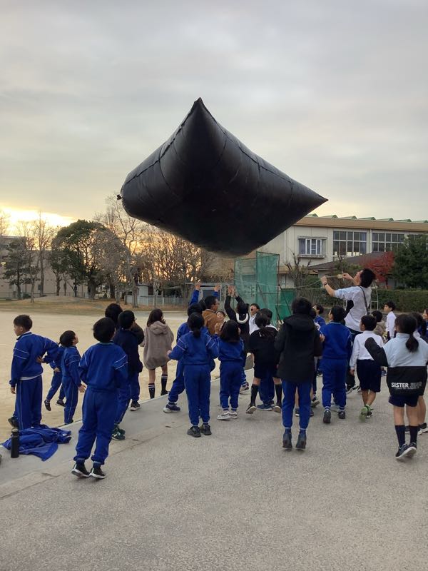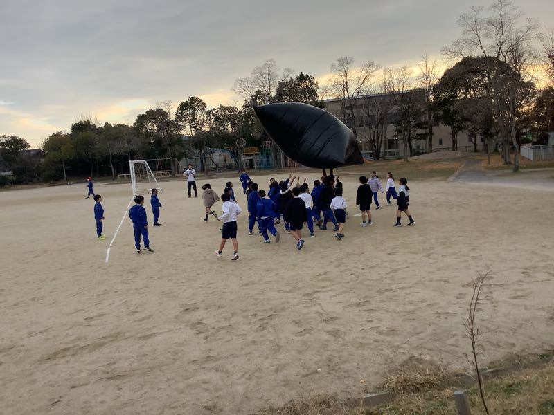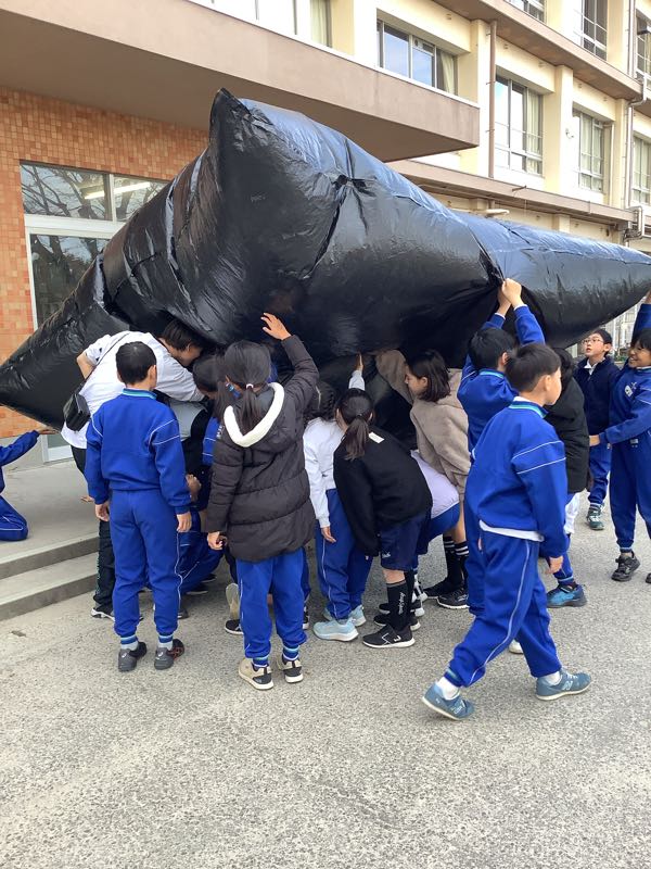 4年生が理科の授業で空気のあたたまり方について勉強しています。今日は巨大バルーンをふくらませました。この巨大バルーンは大きなビニール袋12枚をクラスのみんなで切り貼りして作ったものです。空気について楽しく学ぶことができました!