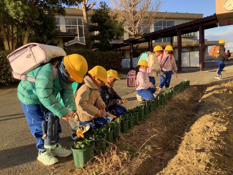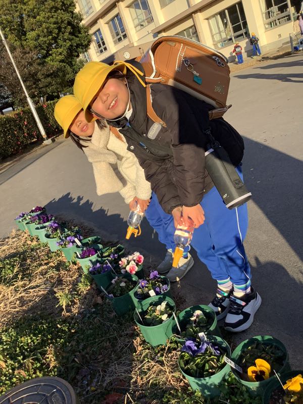 毎朝欠かさずに、緑化委員の子たちがパンジーに水やりをしてくれています。