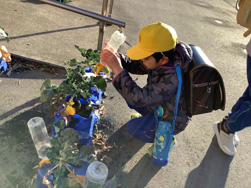 2年生はブロッコリーも育てています。少しずつ大きくなる蕾にワクワクです。