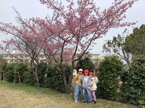 一生懸命水やりをする2年生の後ろを見ると、、、福北の森にも、春が訪れています。