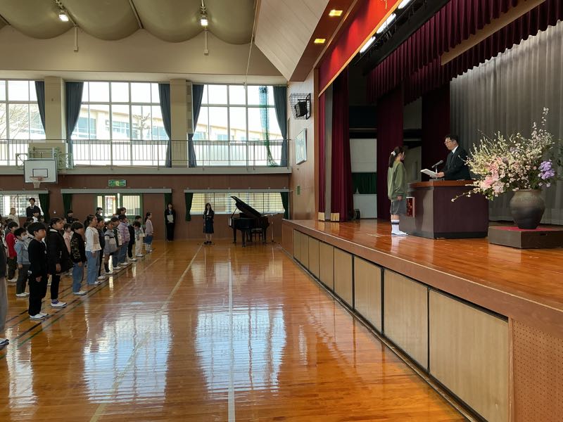修了式が終わった後、令和8年度前期の児童会役員の任命がありました。