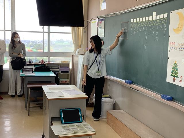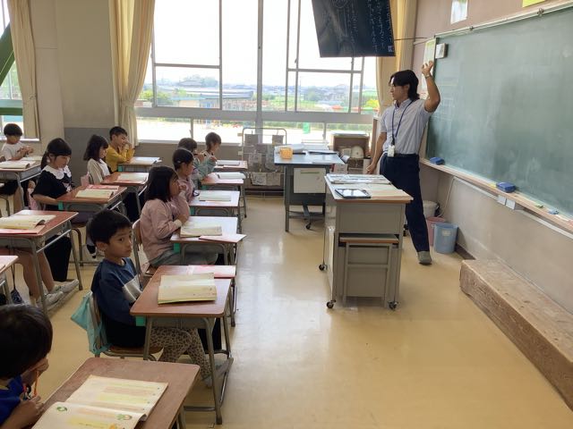 緊張しながらも、先生の話をよく聞いてがんばる1年生。