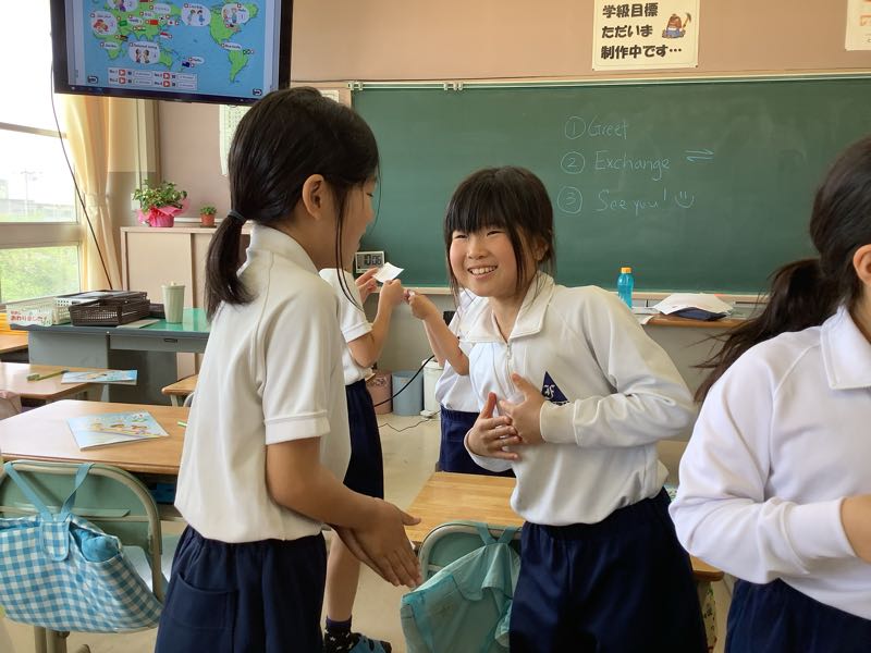 初めて聞く言葉に難しさを感じながらも、笑顔で楽しみながら友達と挨拶をすることができました。