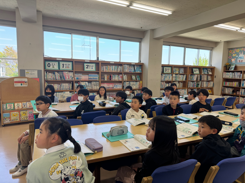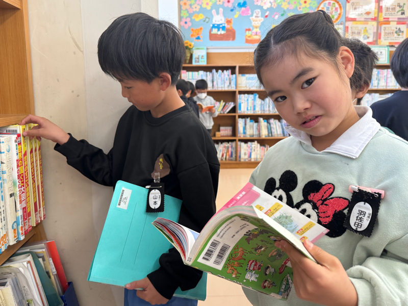 話を聞いた後は、自分の興味や関心に合わせて、本を選びました。学習した日本十進分類法をもとに、「○類の本を借りてみよう」という子もいました。学びをすぐに活かすことができていて、素晴らしいです。