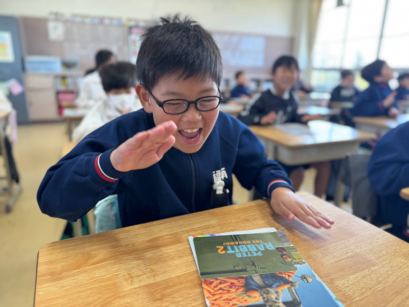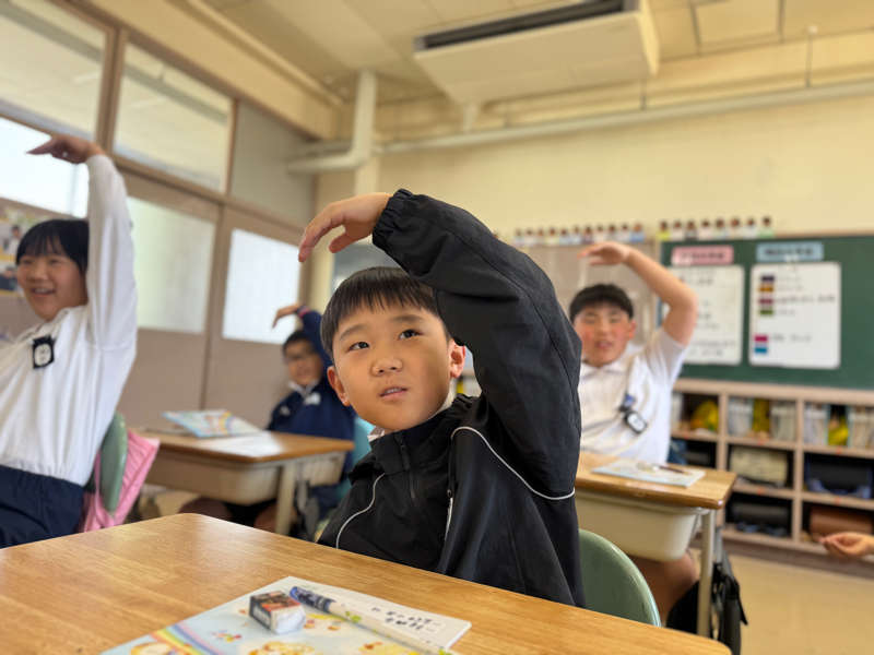 今年度初めての外国語。新しい先生は、レベッカ先生です。レベッカ先生の出身国であるシンガポールのことや好きなものなどを教えてもらいました。自己紹介クイズでは、AからDまでの選択肢を身体で表したり、みんなで机とを叩いてドラムロールをしたり、楽しみながらレベッカ先生のことをよく知ることができました。授業後に「楽しかったね!」と笑顔で話している子ども達の姿が見られました。これからも楽しみながら外国語に親しんでいけるとよいです。