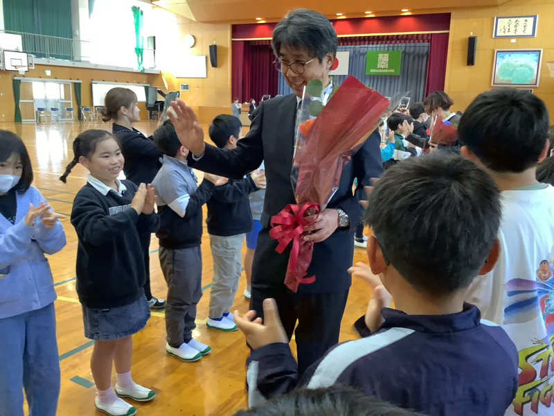退任式、お別れ会をしました。退任式では、先生方のお話を聞きながら、思い出を振り返り、涙ぐむ子もいました。お別れ会では、古川先生に感謝の気持ちを伝えるため、一生懸命呼びかけをしたり、歌を歌ったりしました。寂しい気持ちをぐっと堪え、最後は笑顔で見送ることができました。