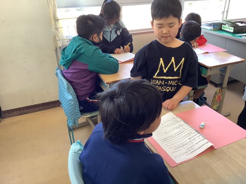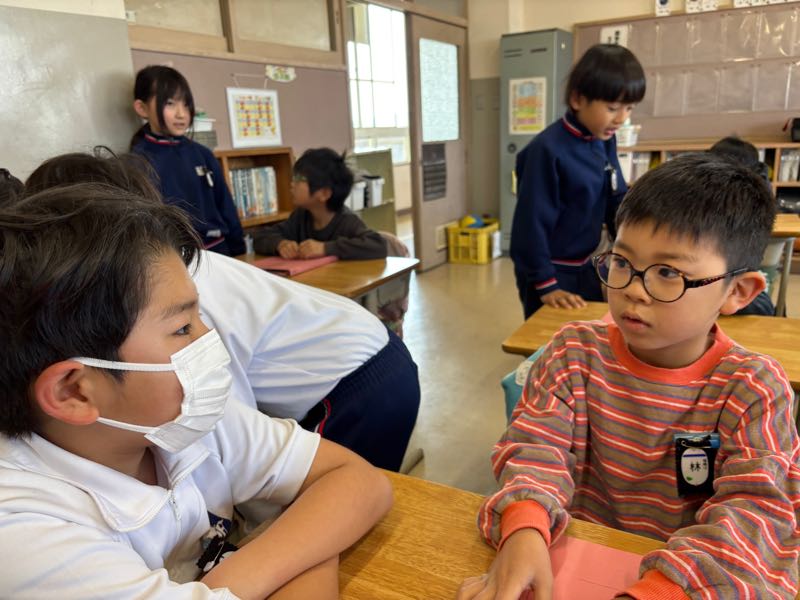 わた学習が始まること、大豆を育て味噌作りをしたことなどを丁寧に教えてくれました。