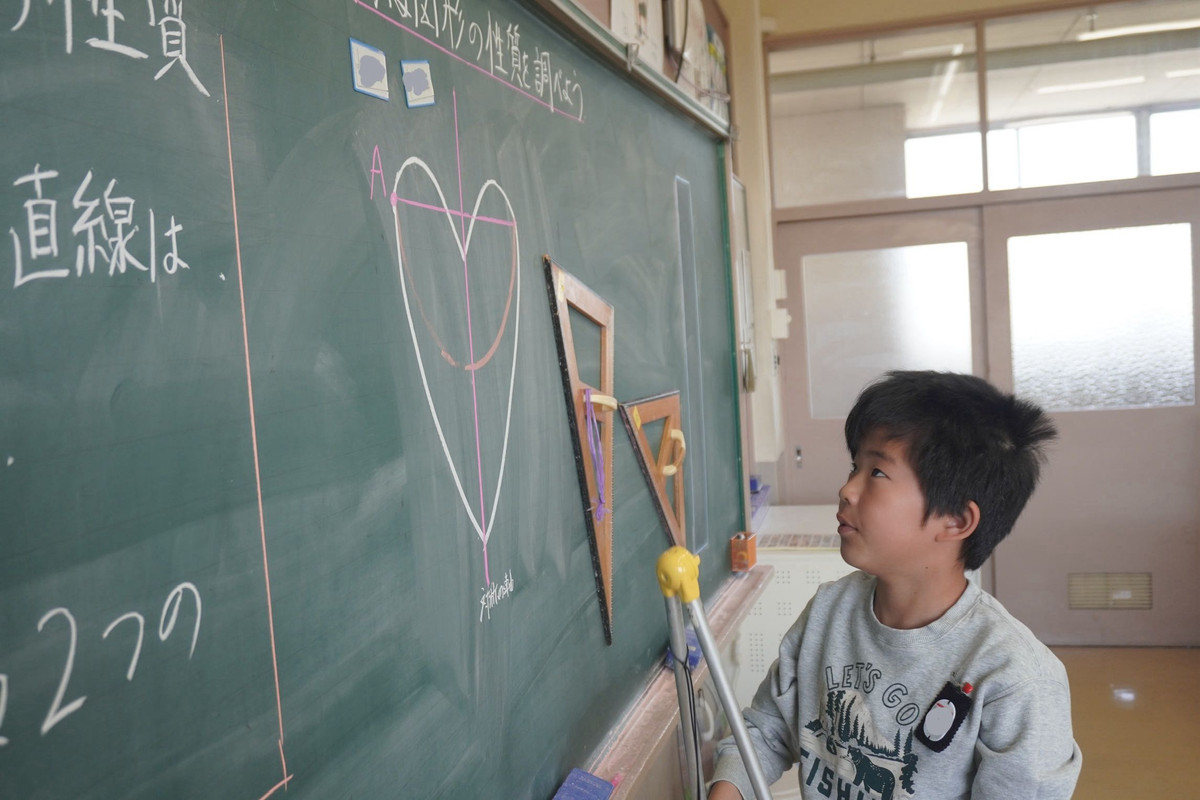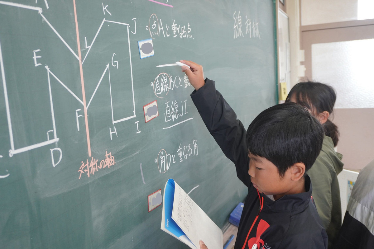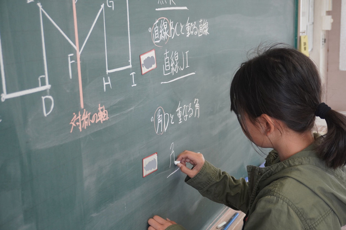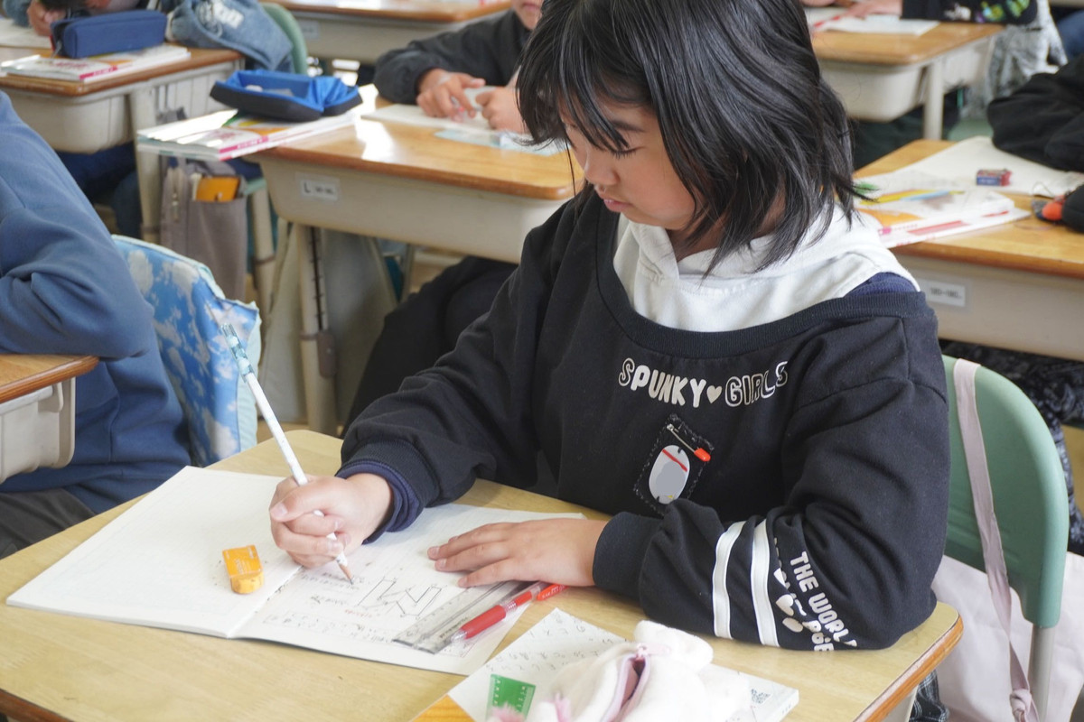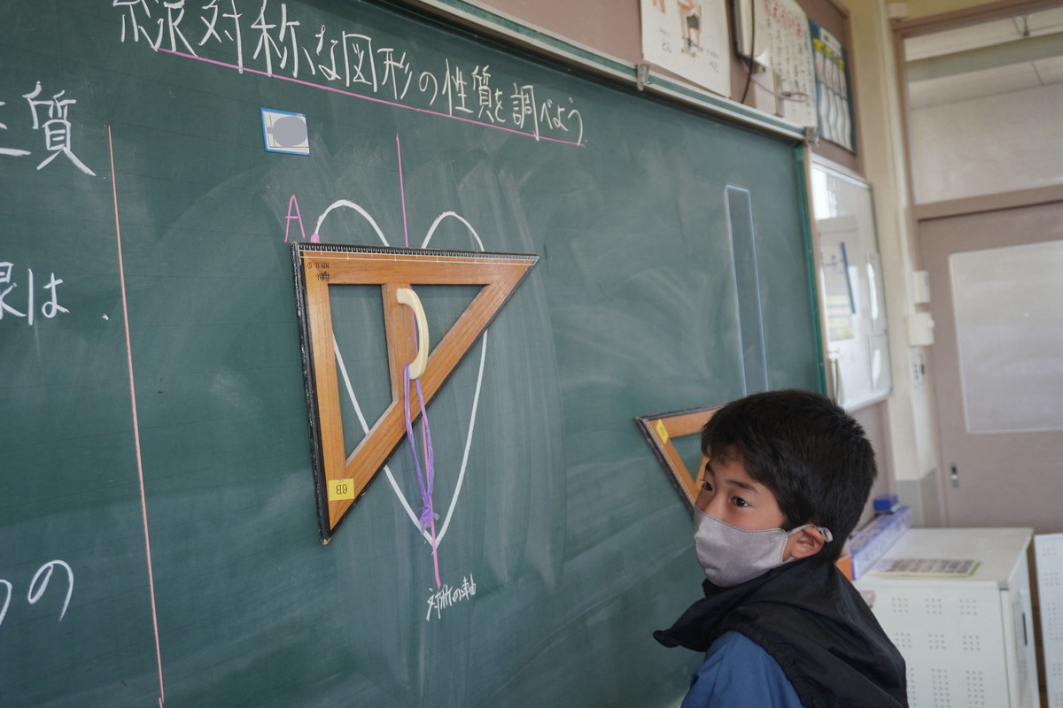 6年生最初の単元は「対称な図形」です。線対称な図形の性質をコンパスや三角定規を使って調べました。