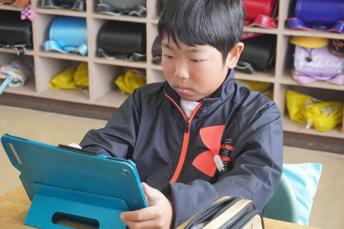 問題が解き終わったら、タブレットですすんで学習する姿も見られました。
