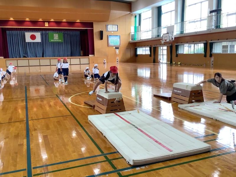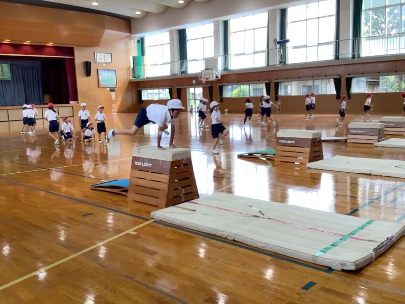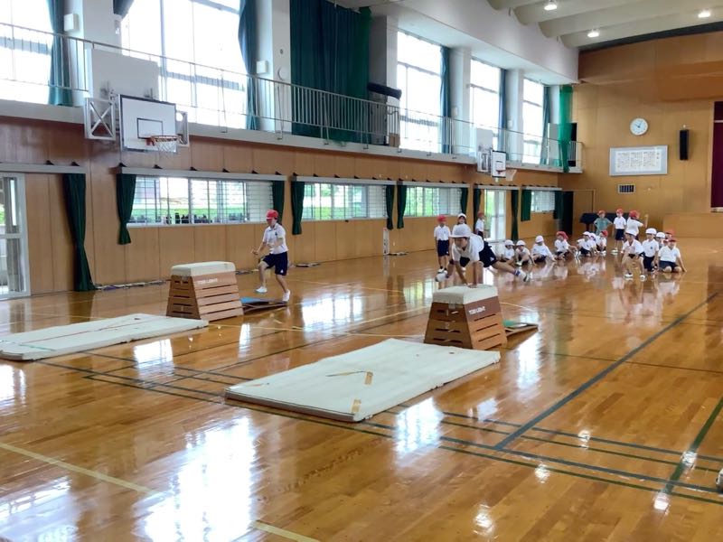 今日からは、跳び箱の学習が始まりました。マット運動を前時まで行っていたこともあり、準備はとても早く行えました。