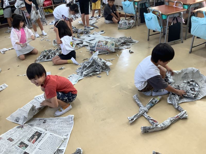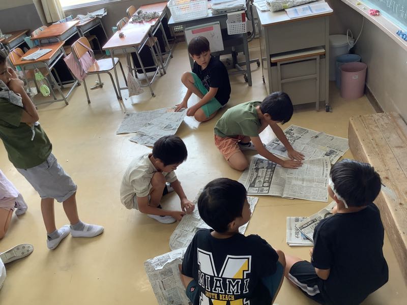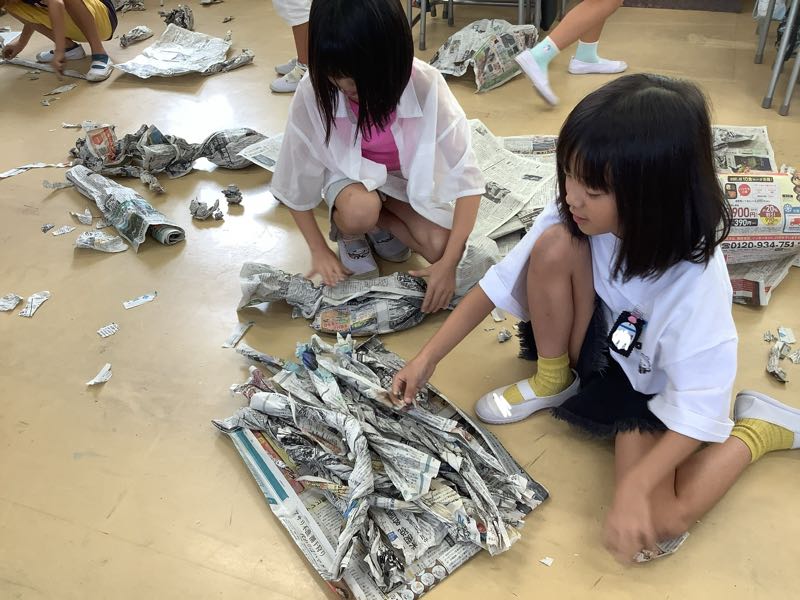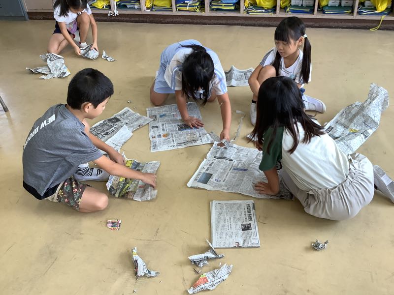 今日は、新聞紙を自由に使って、楽しみながら学びました。