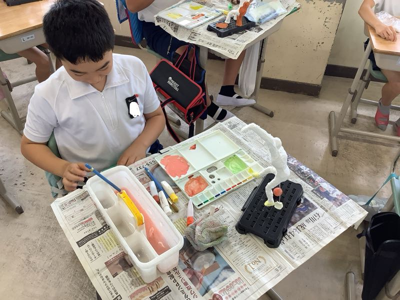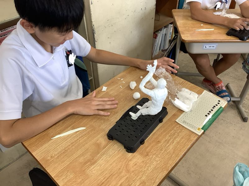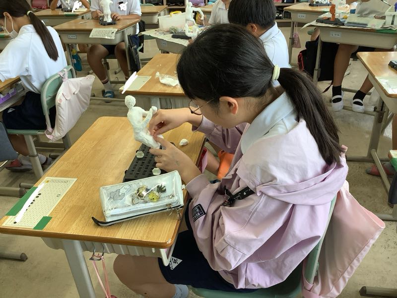 6Aでは、粘土で未来の自分を作っています。髪型や指の動き、服装など細かいところにも気を配って作っていました。
