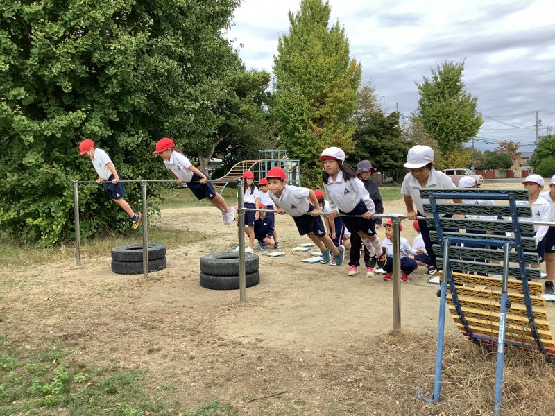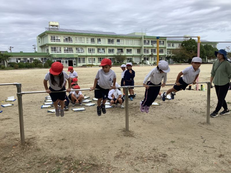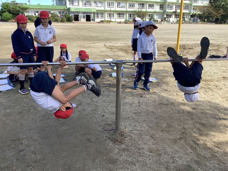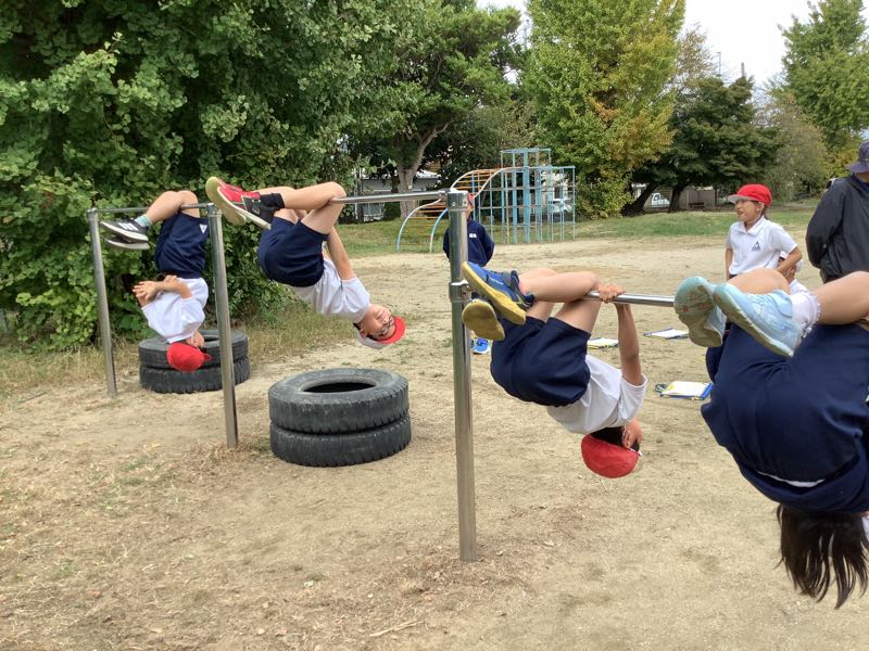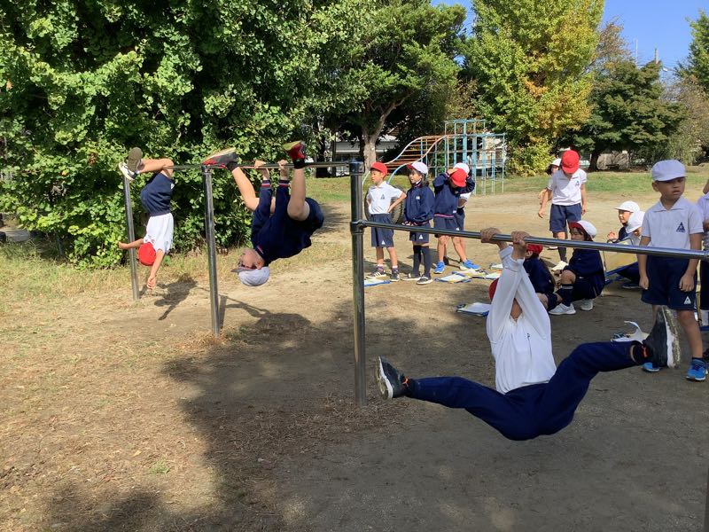 12種類の技を一通り練習した後、自由に練習しました。地球回りや逆上がりなど、難しい技にもチャレンジします。業間にも練習している姿があり、素敵でした。