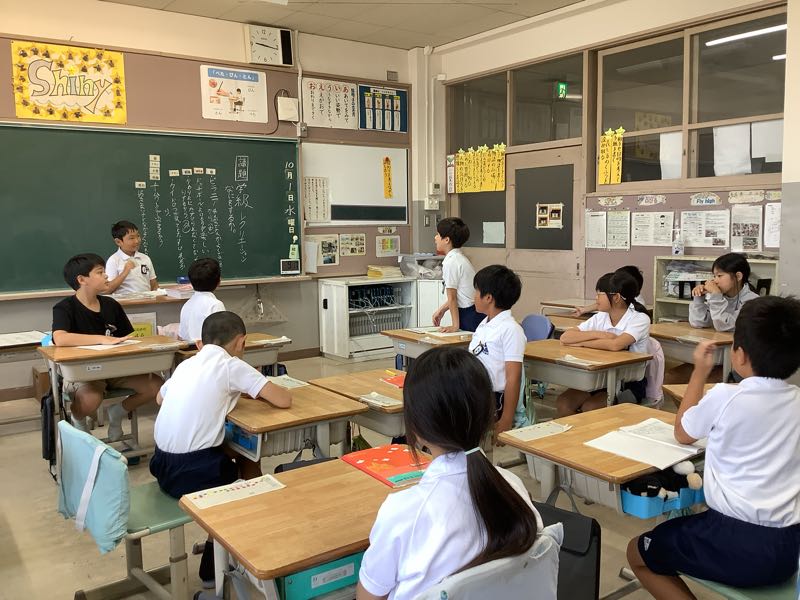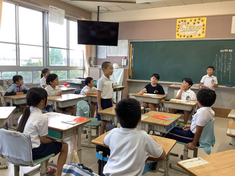 国語「クラスで話し合って決めよう」の学習をしました。司会、提案者などの役割に分かれ、議題「学級レクリエーションでなにをするか。」について話し合いました。司会を中心にみんなで楽しむためにたくさん意見を出しながら話し合い、ドッジボールに決まりました。学級レクリエーションが楽しみです!
