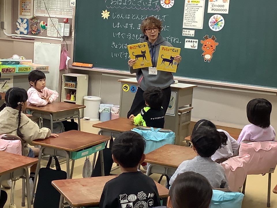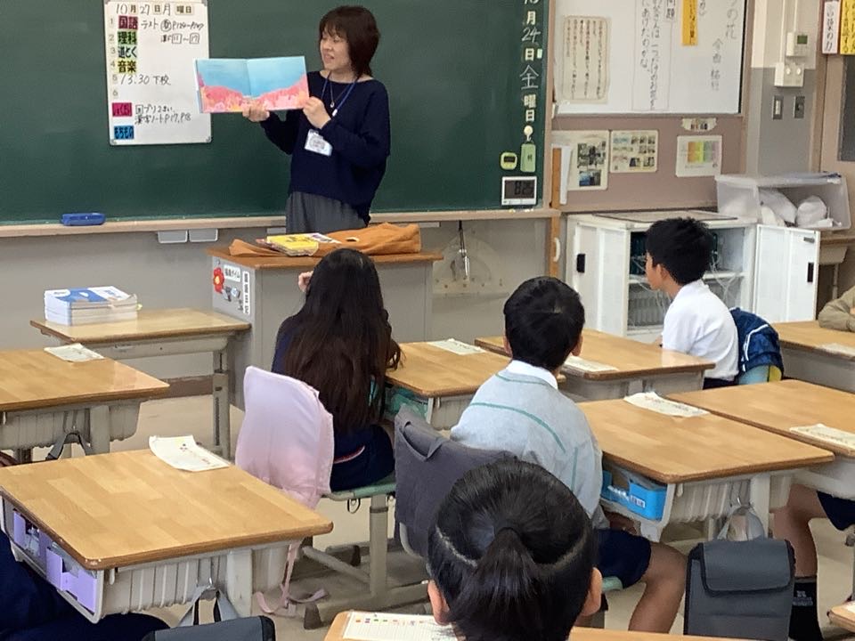 今日は図書ボランティアさんの読み聞かせの日。1・3・4・5年生のクラスに図書ボランティアさんが来てくださいました。自分の好きな本を自分のペースで読むのも楽しいですが、おすすめ本を読み聞かせしていただけるはまた格別の楽しさがあります。子どもたちは引き込まれるようにお話を聞いていました。折しも今は読書週間。自分では普段手にとらないような、いろいろなジャンルの本に出会うことを目指しています。読書週間は今日で終わりますが、引き続きたくさんの本を読んでほしいものです。本って楽しいね!