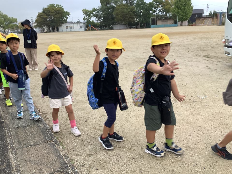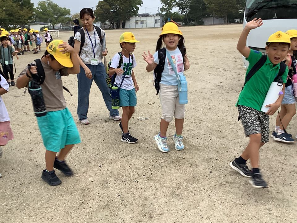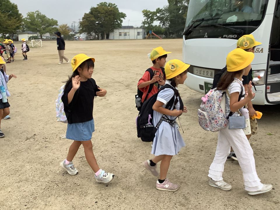 今日は1年生の校外学習の日,いつものランドセルではなく、リュックサックをしょって、バスの窓からにこやかに手をふりながら、おかざき世界子ども美術博物館にむかって出発しました。たくさん楽しんできてくださいね。