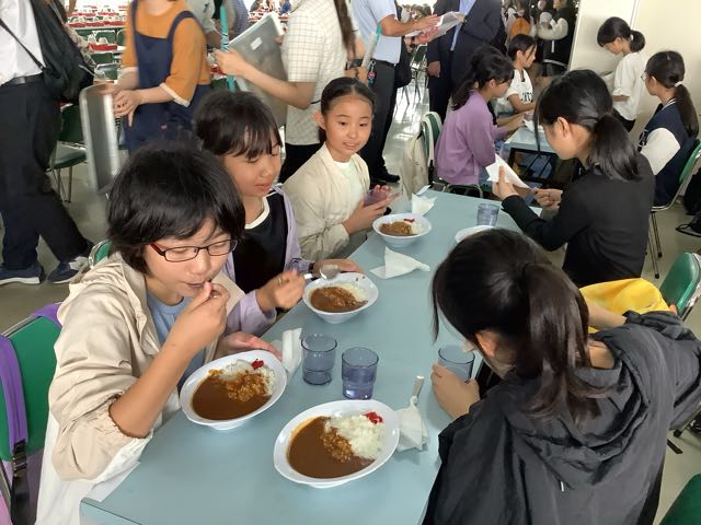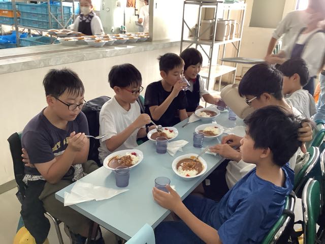クラスで写真を撮り、お昼ごはんです。今日のお昼はカレー。おなかぺこぺこさんは、あっという間に完食です。