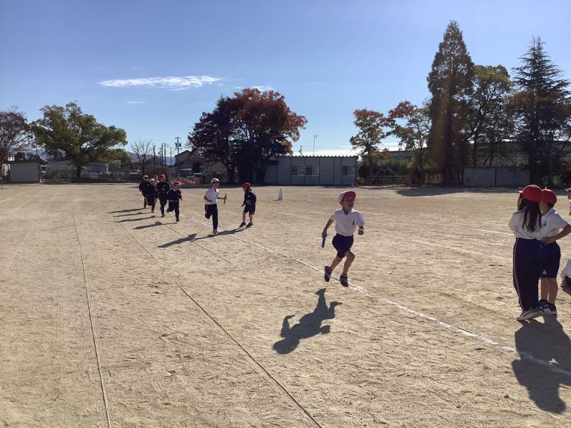 マラソンの練習として、チームを組んで駅伝形式で走りました。ペースを保って走り切れるように、一周あたり何秒かを考えながら走りました。