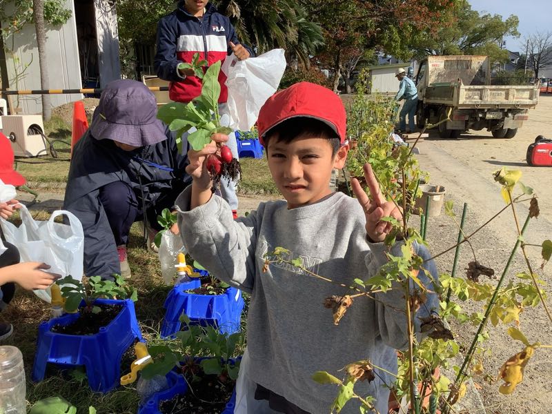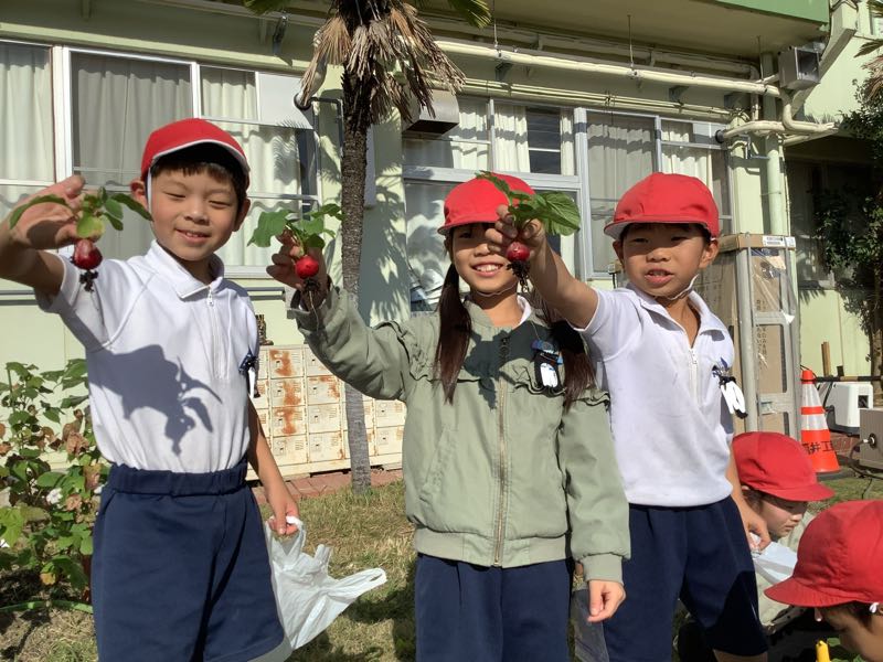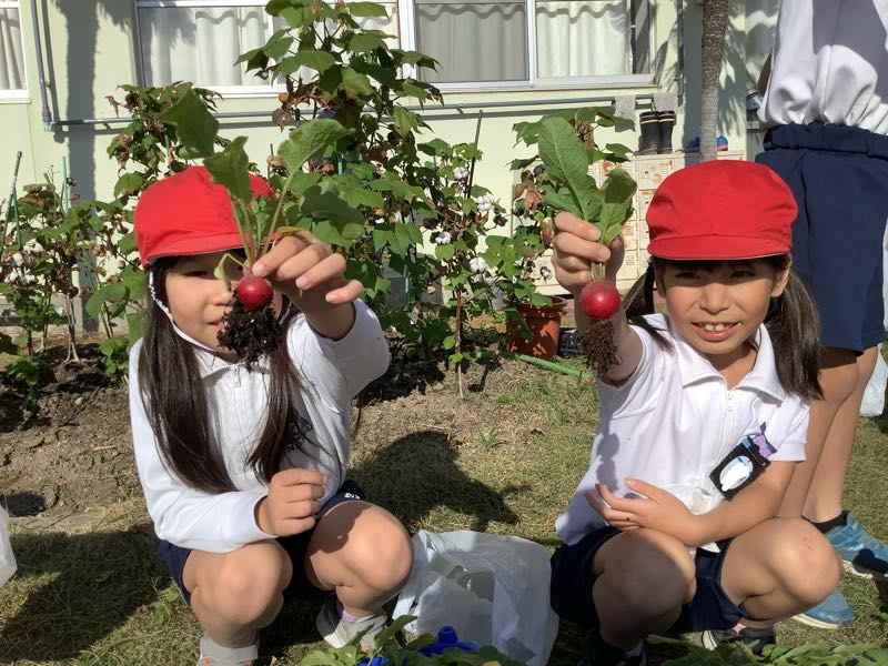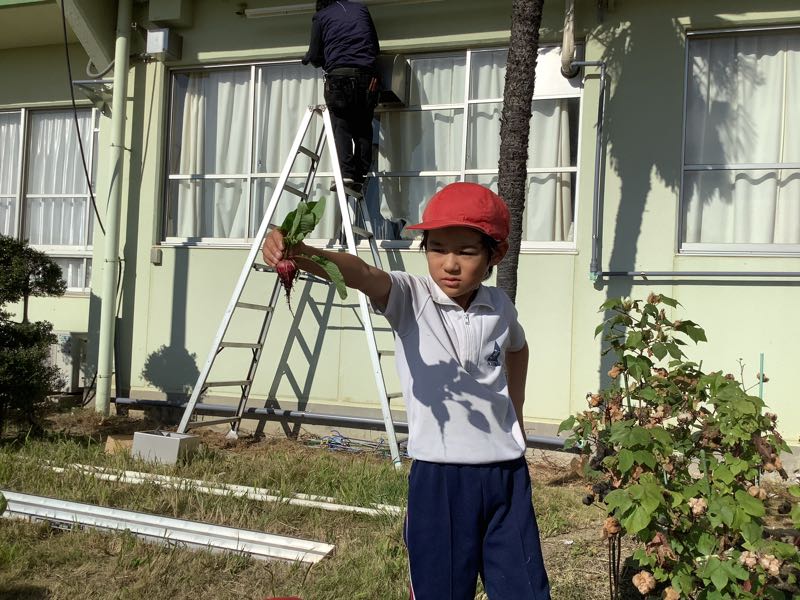 先月植えたラディッシュを収穫しました。毎日の水やりを頑張ったので、とても大きくなりました。