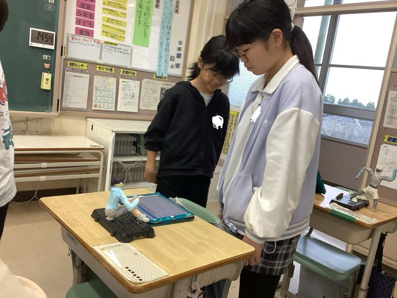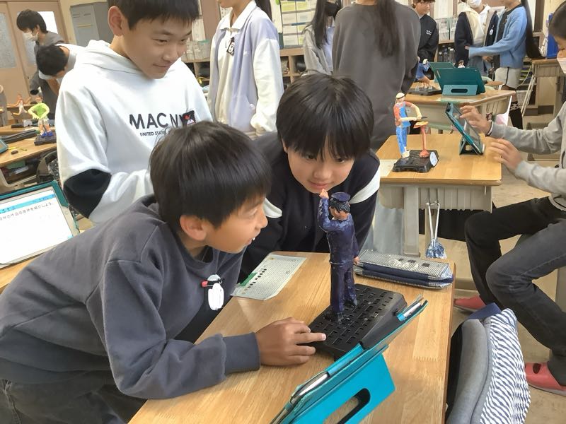 図画工作科で作った「未来の自分」の人形を鑑賞しました。
