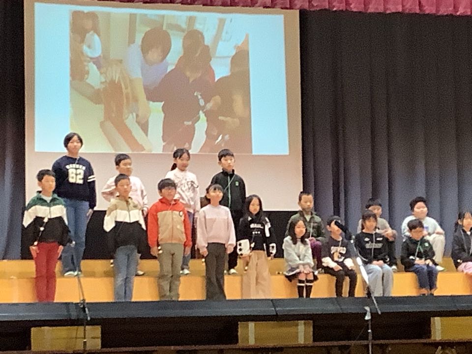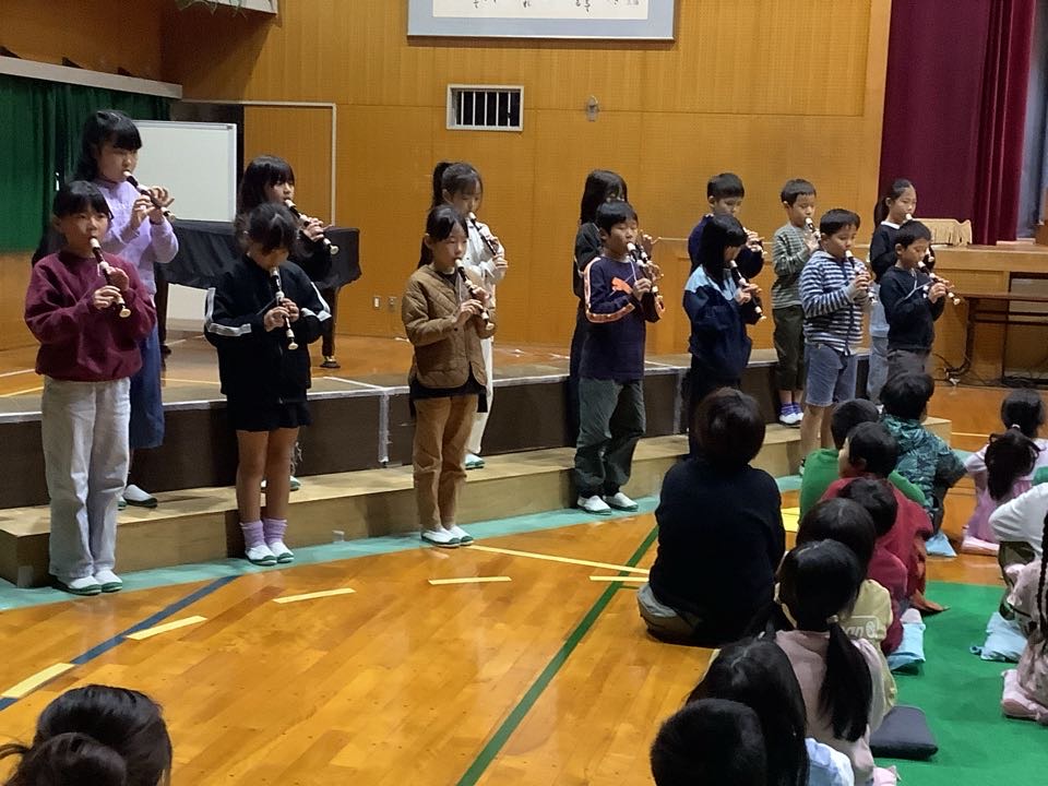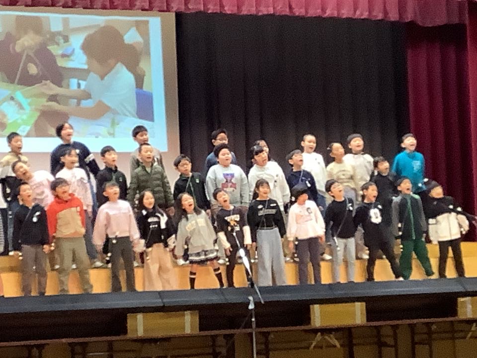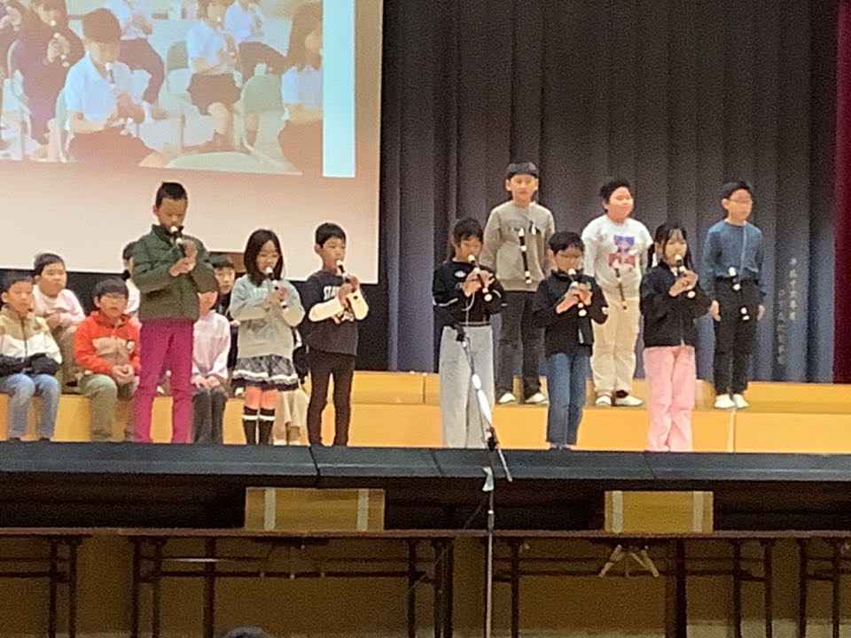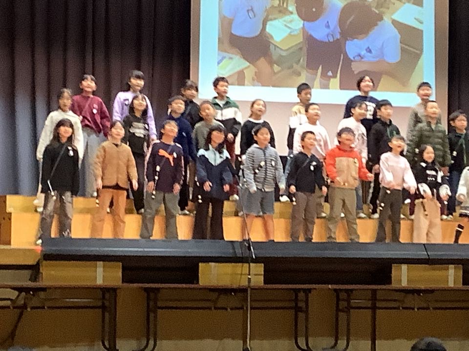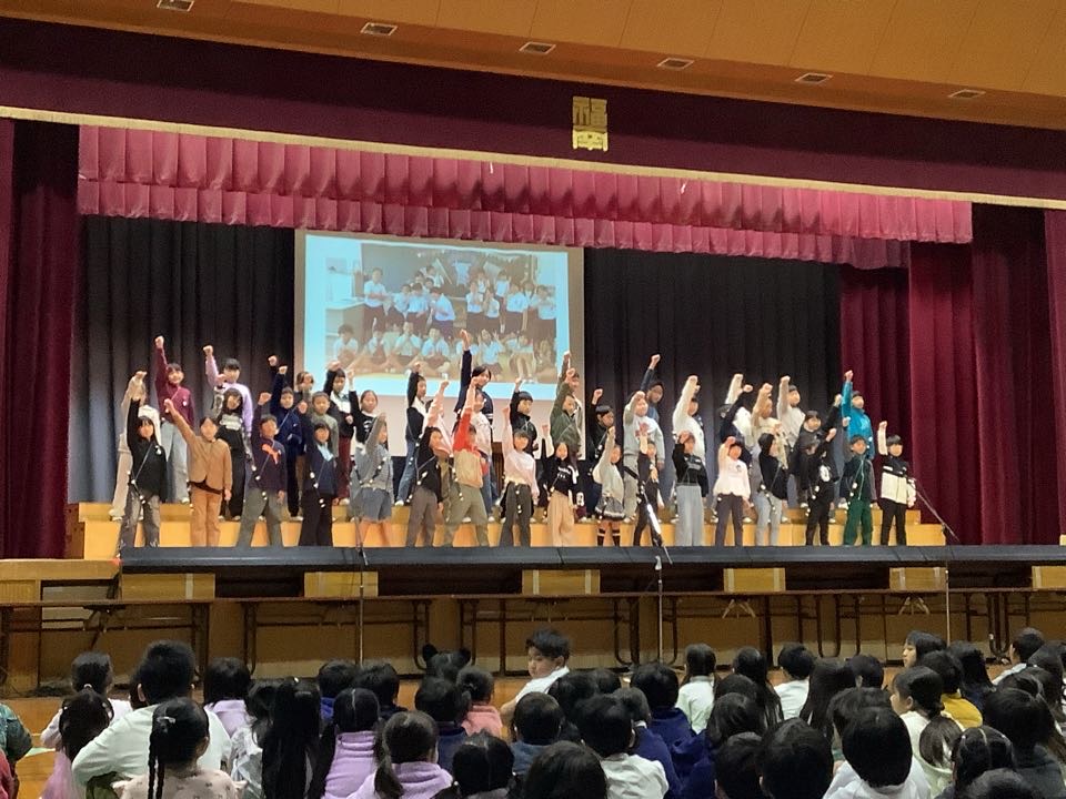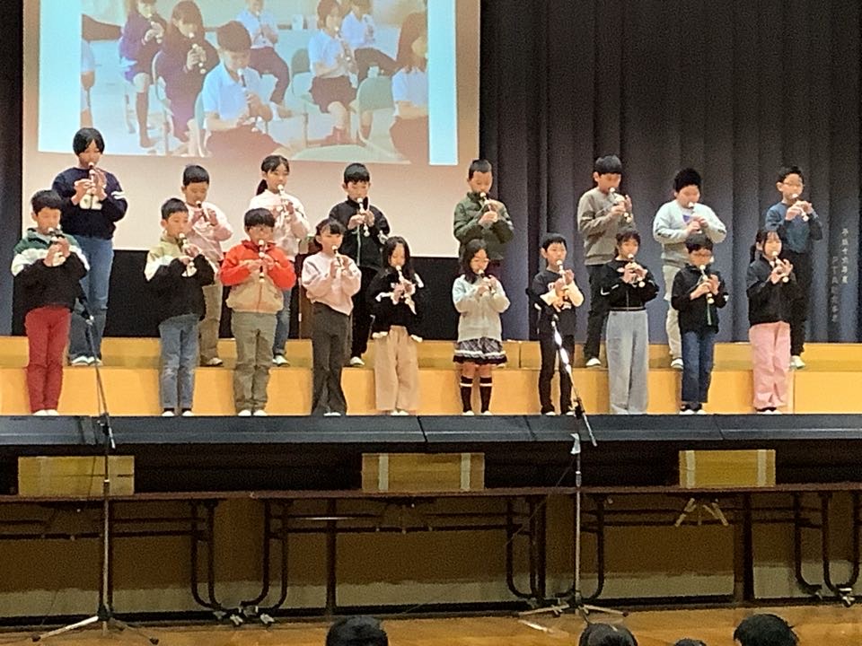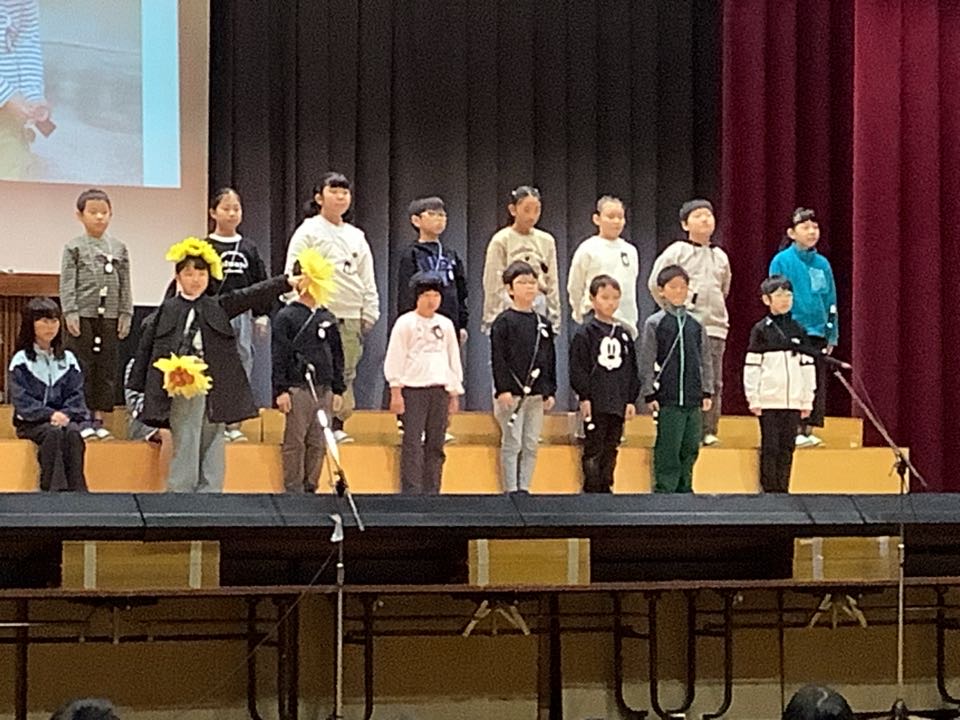 トップを飾るのは、3年生。演目は、「チャレンジ!ひらけ新しい学びのとびら」学校の時間割に沿って、3年生になってから体験してきた新しい学びを発表しました。英語・理科・社会・総合・リコーダーなど、たくさんの勉強をしてきたようですよ。