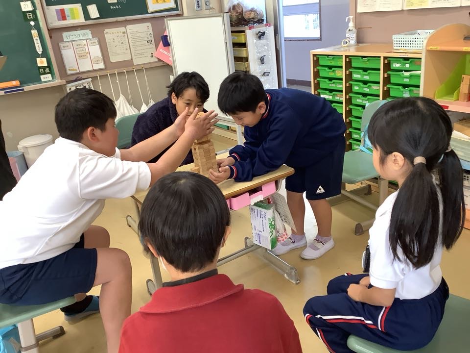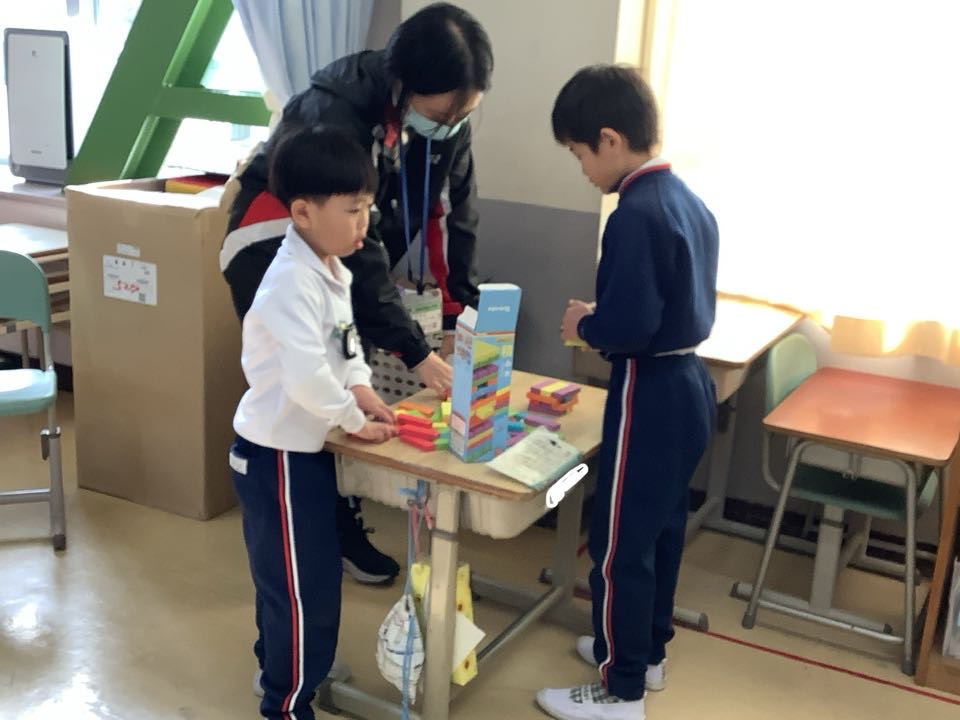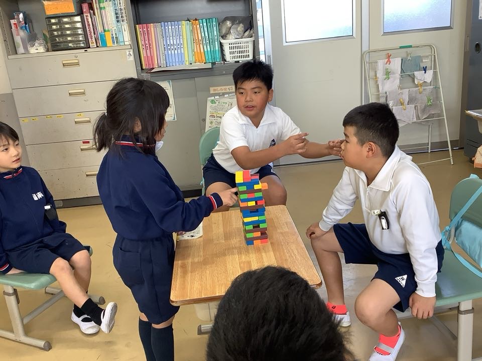 わたのみA組の中では楽しく遊べるようになったので、今日はなかよしとわたのみB組を招いてみんなでジェンガをしました。