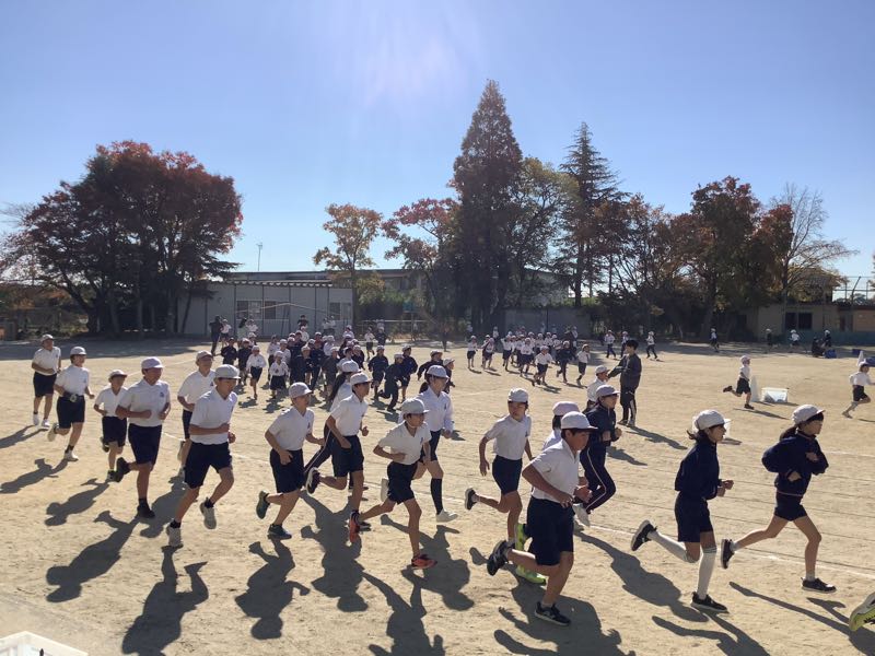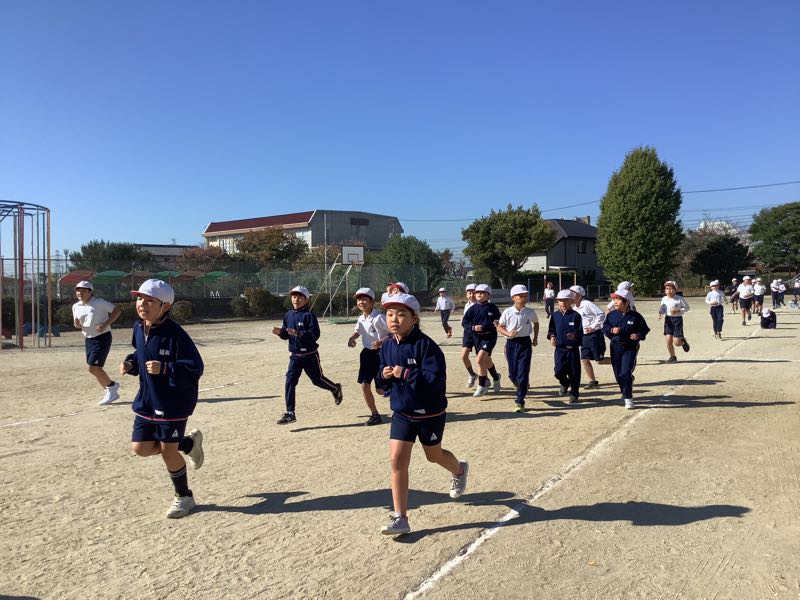 マラソン週間が始まっています。2時間目の休み時間に、全校みんなで走ります。