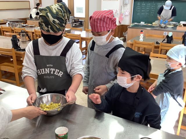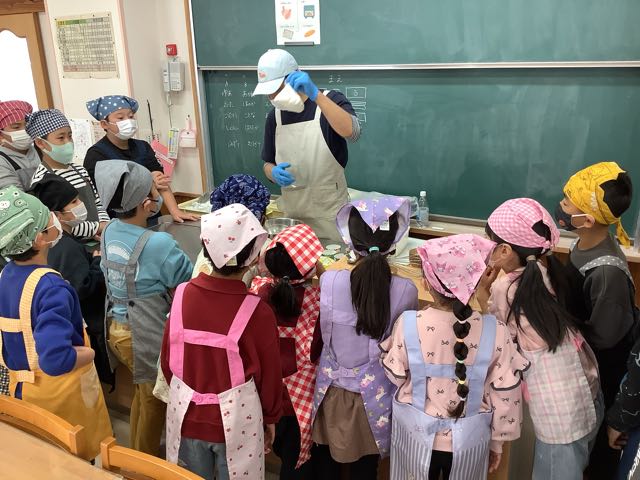 パン屋さんが福南小に来て、パン作りを教えて下さいました。