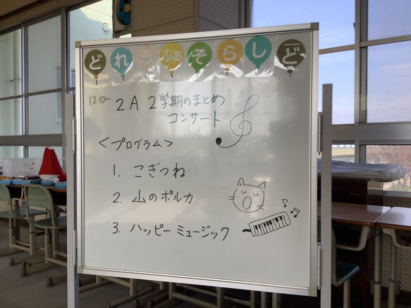 1学期に引き続き、まとめコンサートをしました。担任の先生、校長先生、教頭先生、事務アシスタントさんを招待しました。