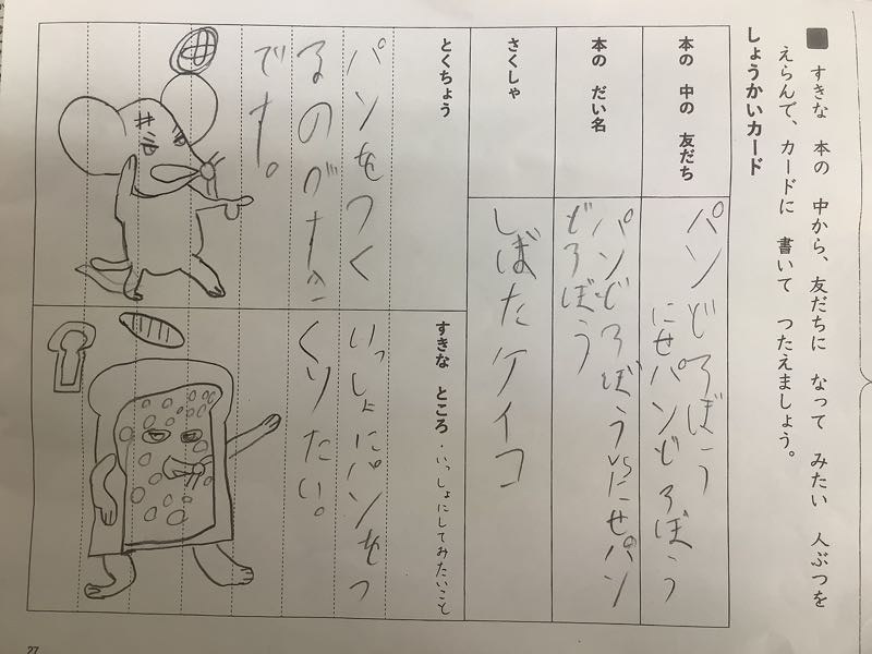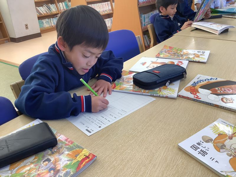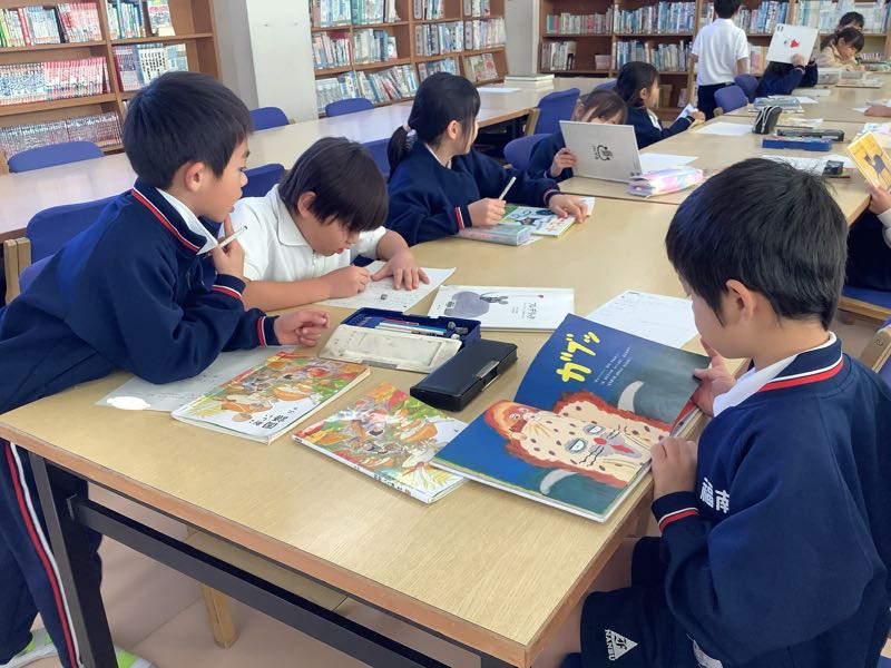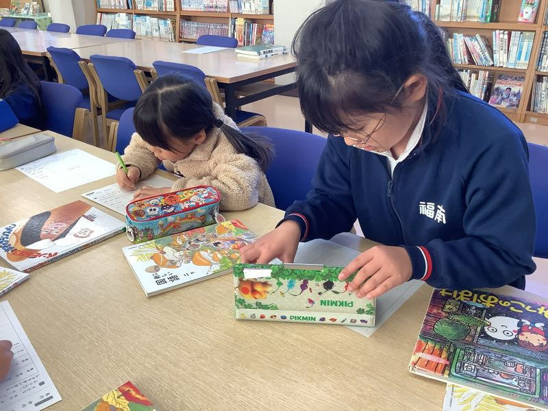 好きな絵本から、友だちになりたい登場人物を選び、一緒にしてみたいことを考えました。図書館で絵本を選び、紹介カードにまとめていきます。