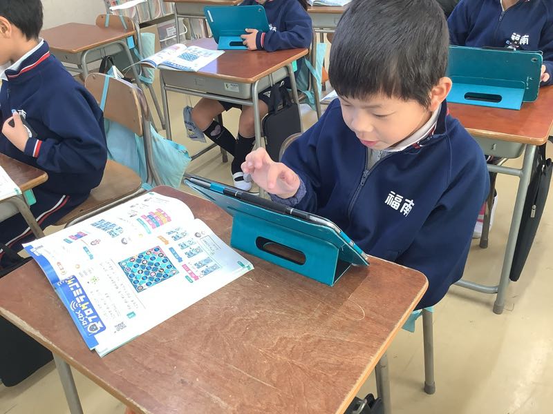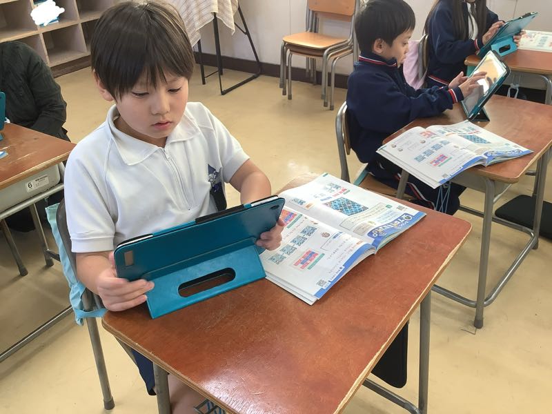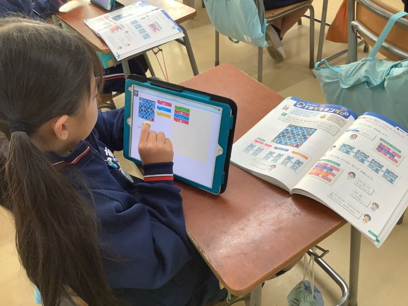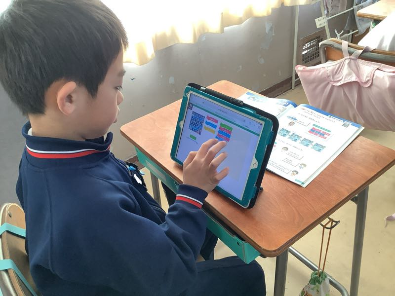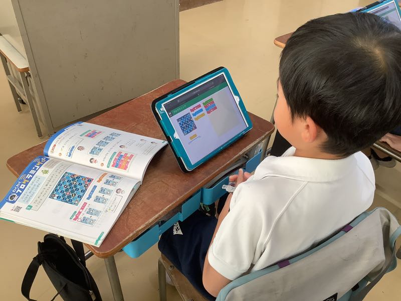 今日はICT支援員の方と、タブレットを使ってプログラミングに挑戦しました。