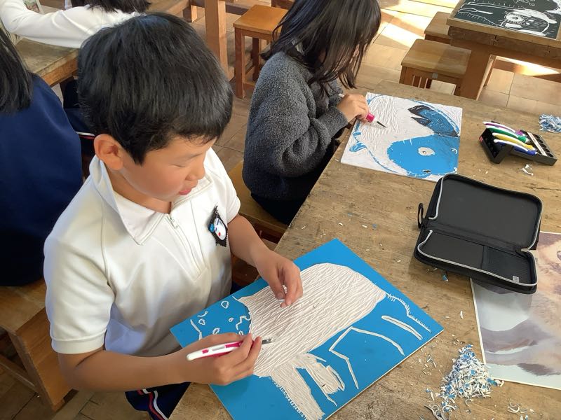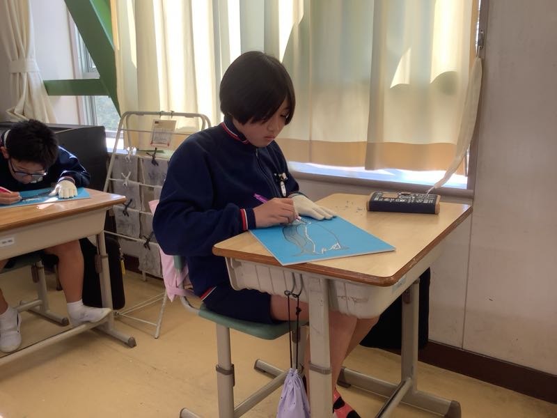 一人一人が自分のペースで、線を丁寧に彫り進めています。版画が刷り終わったときに、どんな作品に仕上がるか今から楽しみです!