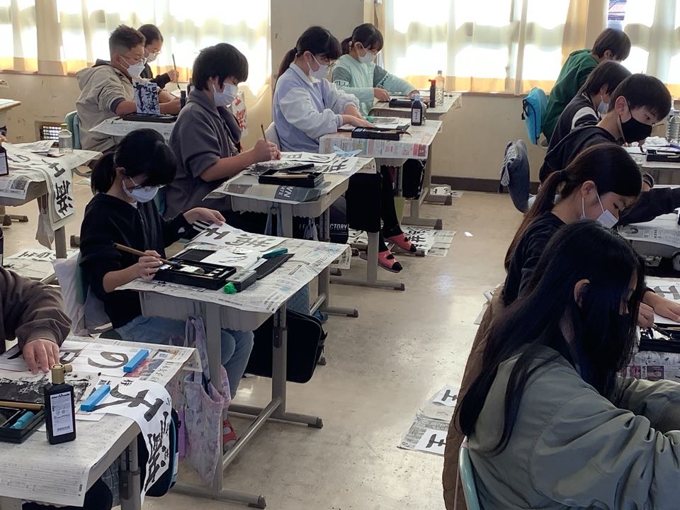 今日は競書会の日です。今まで練習してきた力を発揮すべく、集中して作品づくりに取り組みました。