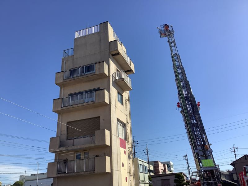 消防車の中には、消火活動に必要なさまざまな物がたくさん積まれていました。はしご車のはしごがのびて高くまで上がる様子には、驚きの声が上がりました。
